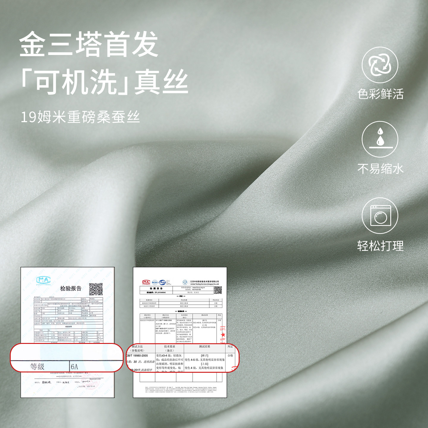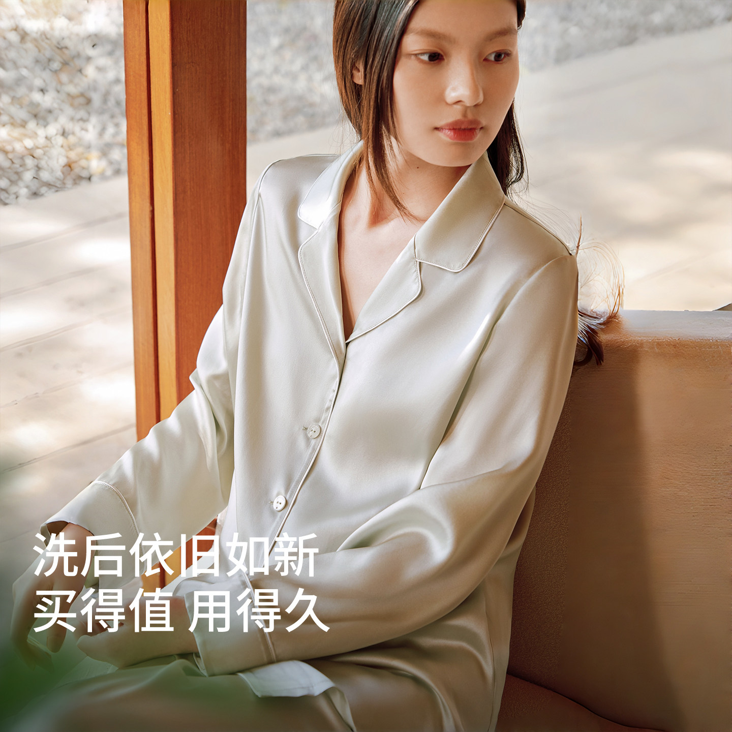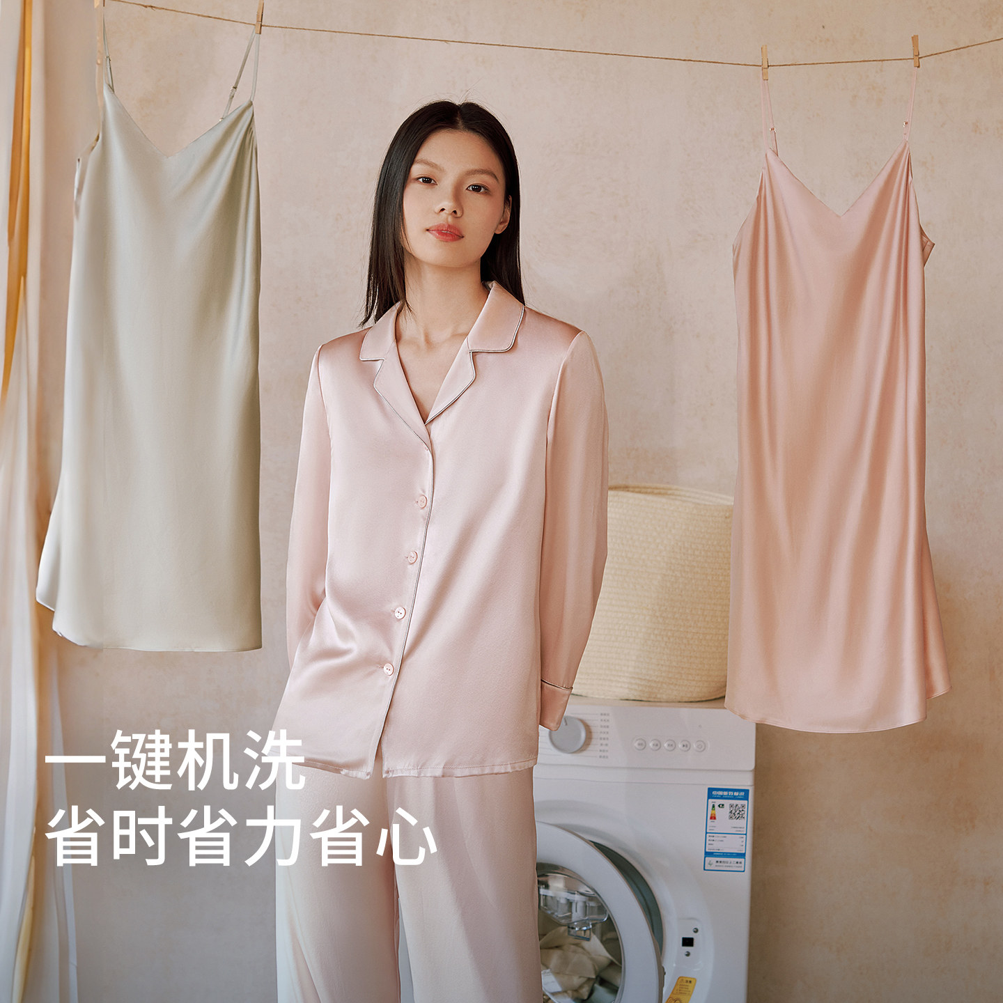 金三塔可机洗真丝睡衣女重磅100%桑蚕丝长袖情侣衣裤套家居服礼物