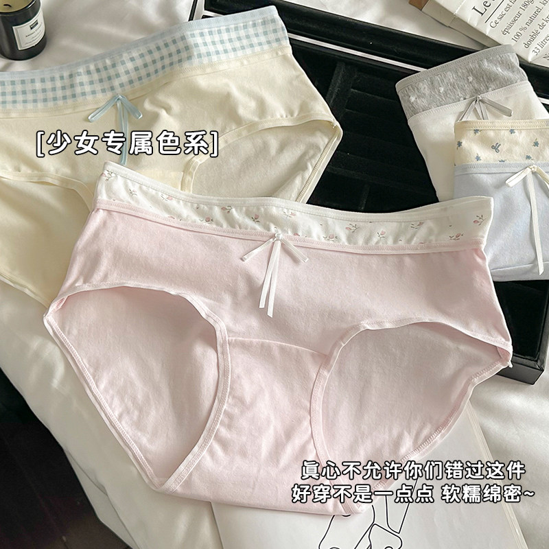 内裤女生纯棉抗菌100%全棉裆2023新款日系无痕透气女士中腰短裤