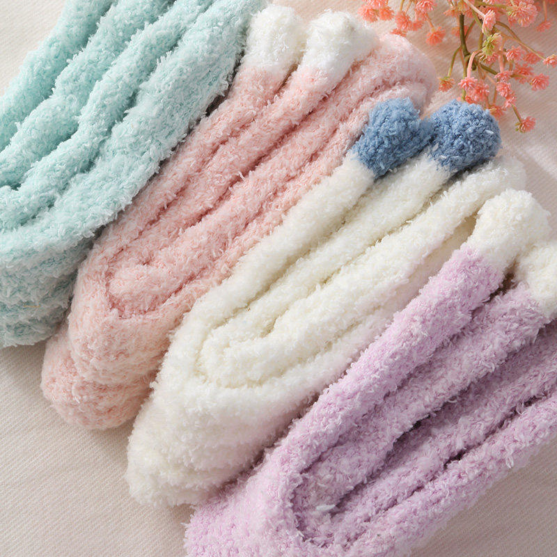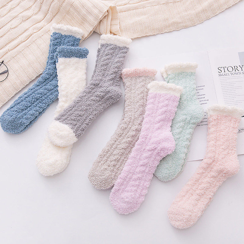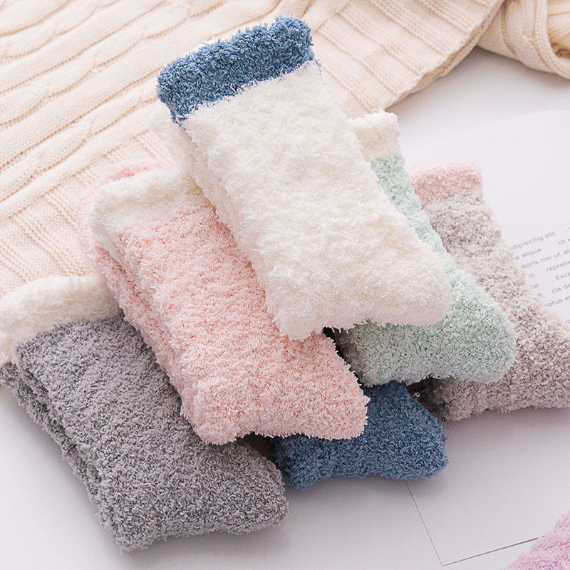 珊瑚绒袜子女冬季加厚加绒保暖地板袜睡眠月子袜秋冬新款睡觉袜子