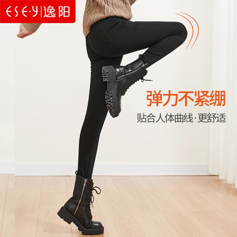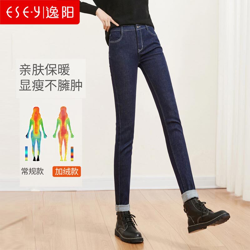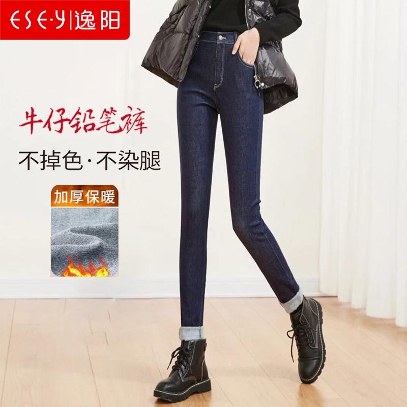 逸阳加绒牛仔小脚裤女不易褪色2025冬季新款高腰加厚保暖显瘦裤子