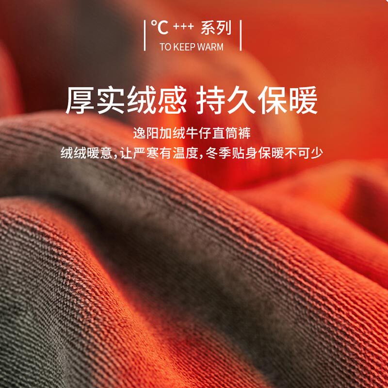 森马牛仔裤女冬加绒做旧长裤女生保暖显腿长ins潮街头复古直筒裤
