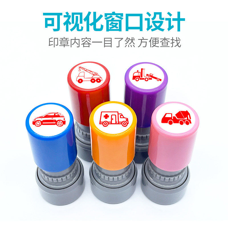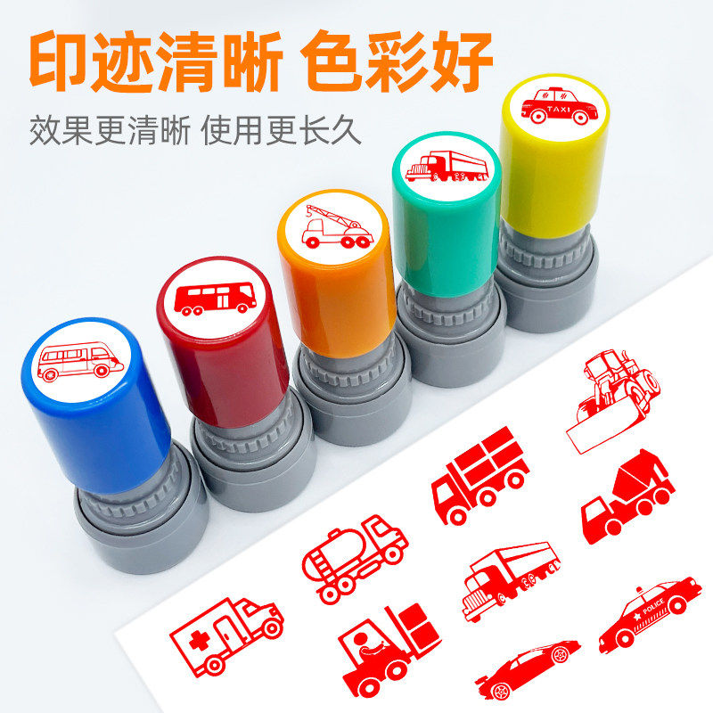 警车印章可爱卡通出租车巴士盖章跑车越野车小汽卡车救护车教园挖