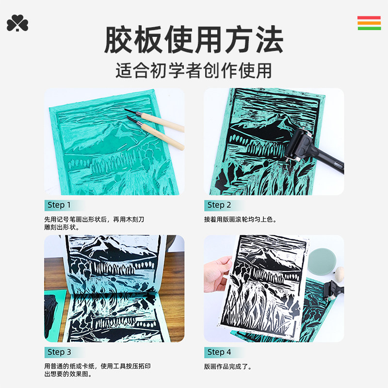 画胶板版画工具套装美术雕刻专用a5a4胶板绿色木刻版画材料pvc橡胶板拓印画硬胶勾线描边绘图板拓印画软麻