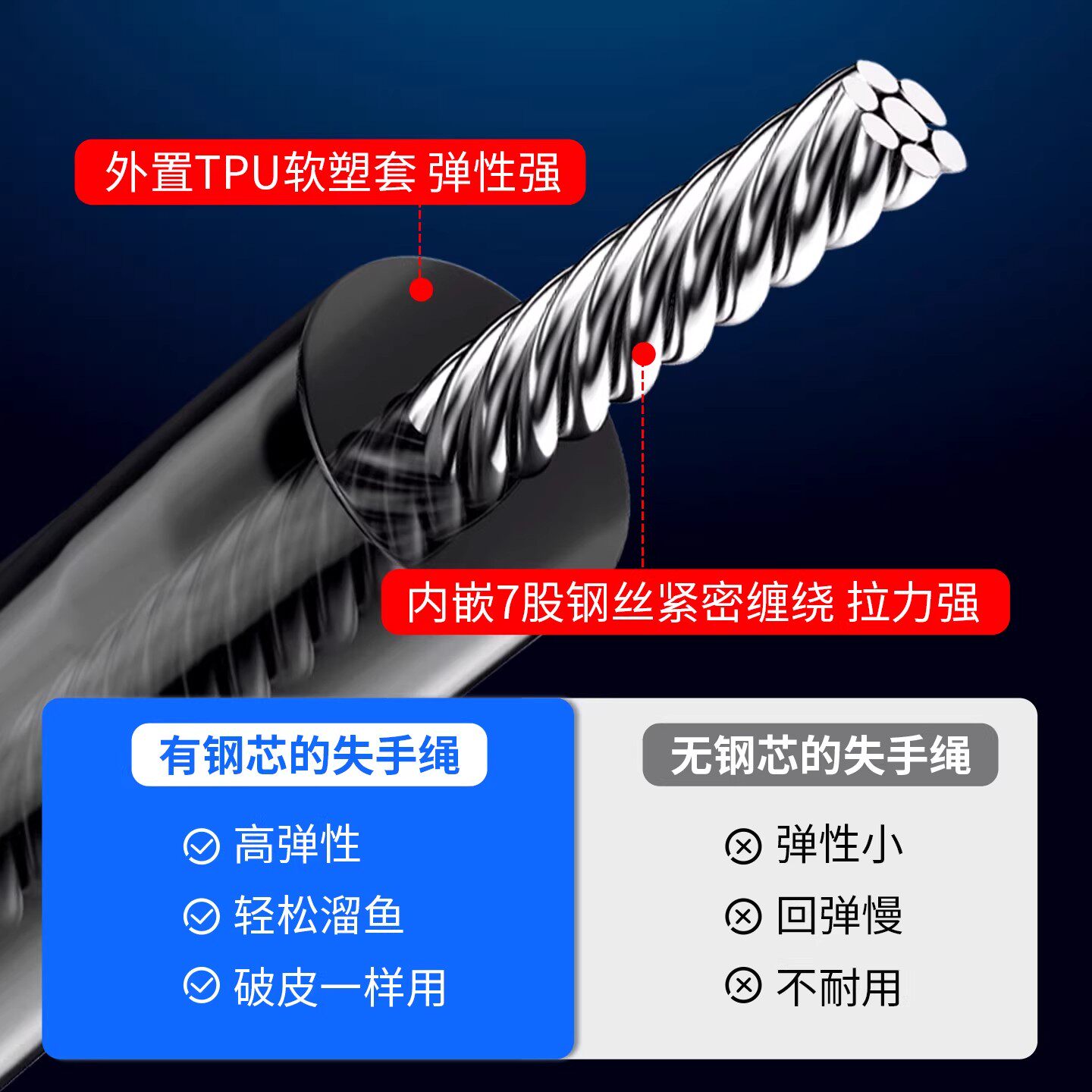 钢丝失手绳自动伸缩路亚筏钓鱼挂扣绳鱼竿大物防丢绳新款垂钓装备