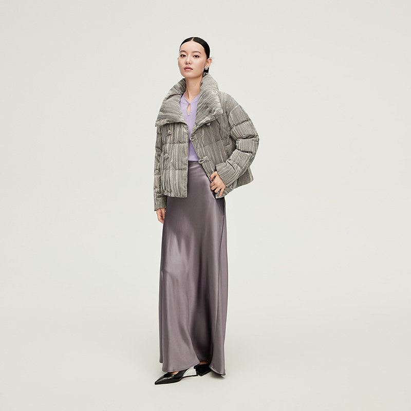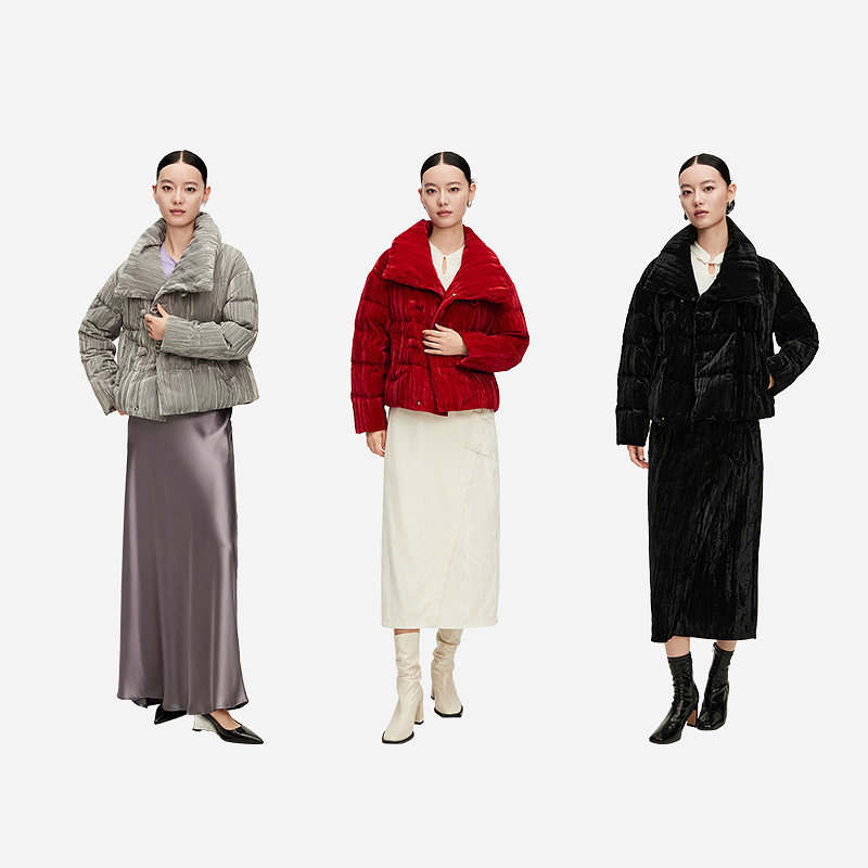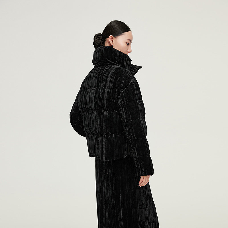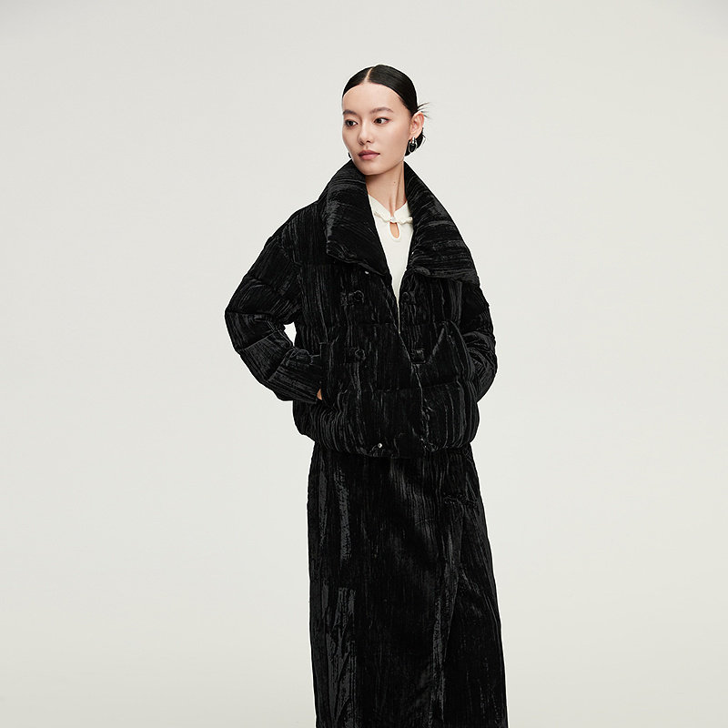 艾莱依新中式丝绒羽绒服重工绣花精致优雅翻领秋冬商场同款短外套