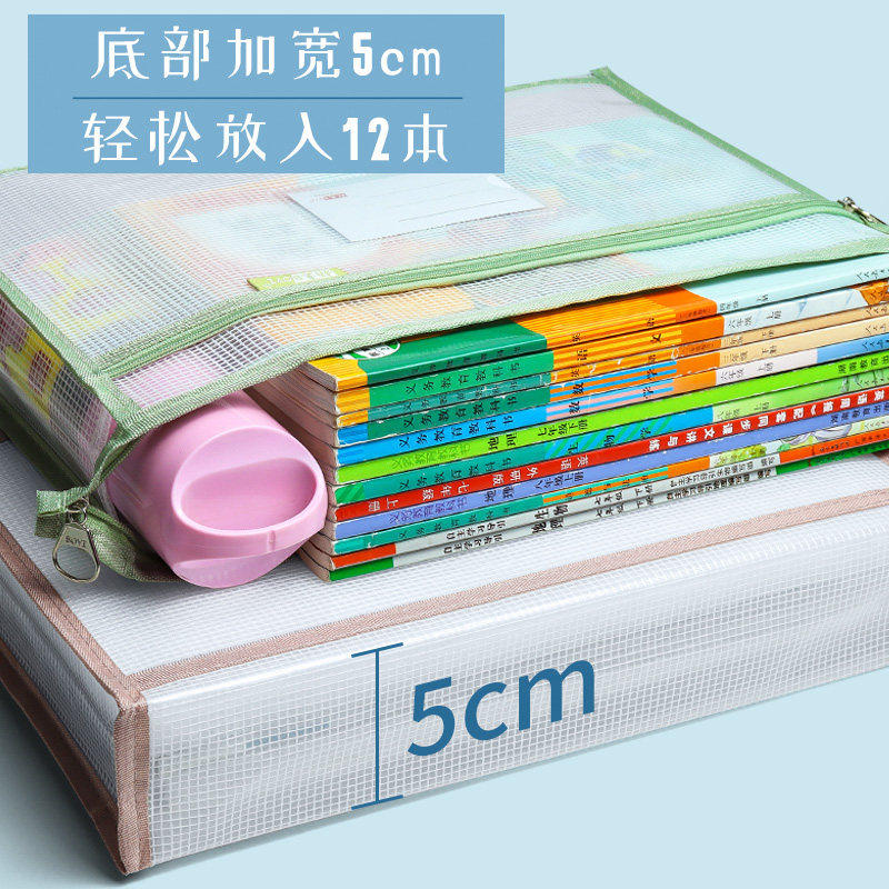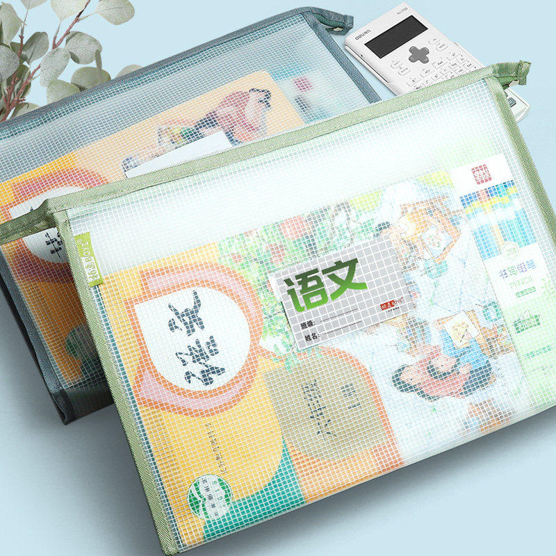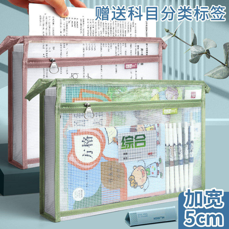 科目分类文件袋透明拉链式a4收纳拎书课外班作业男女孩书包小学初中生l型考试试卷学科补习网纱手提袋大容量