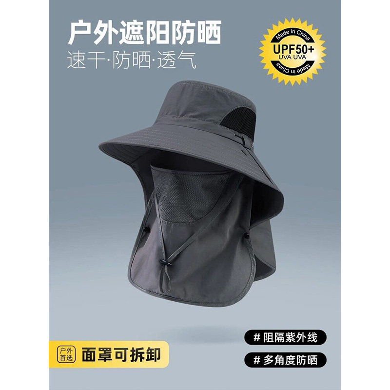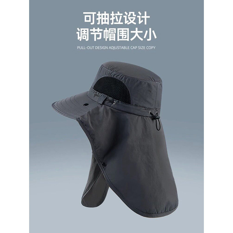 渔夫帽男夏季防紫外线户外出游遮阳帽子钓鱼遮脸防晒帽大檐太阳帽