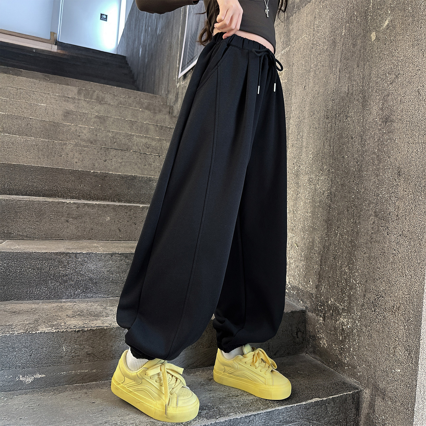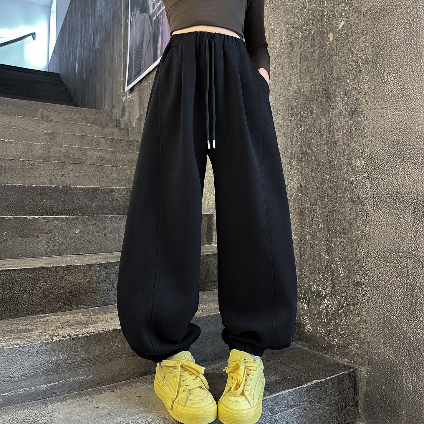 女童加绒裤子冬2026新款今年流行爆款儿童卫裤运动裤初中韩系黑色