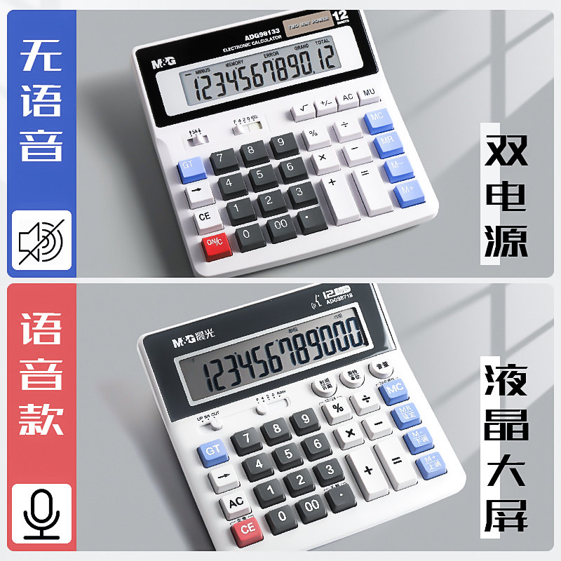 晨光财务计算器大号办公用带语音计算机财务会计专用计算器大屏太阳能大商务便携电池普通