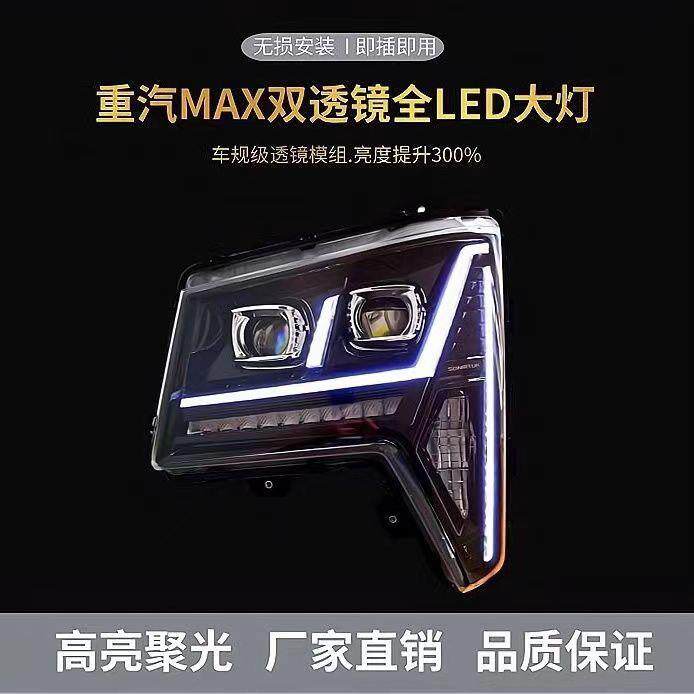 重汽豪沃MAX前大灯总成超亮LED双透镜流水转向前照灯原厂配件