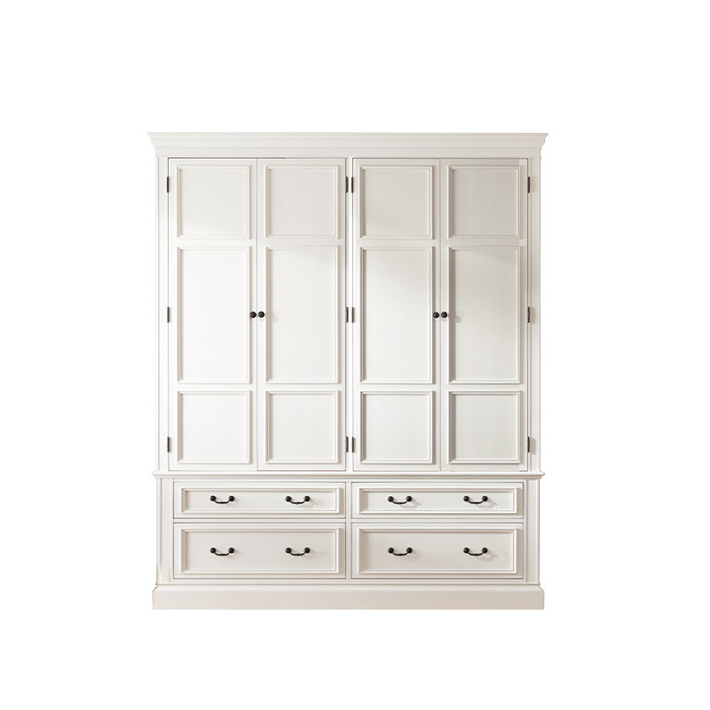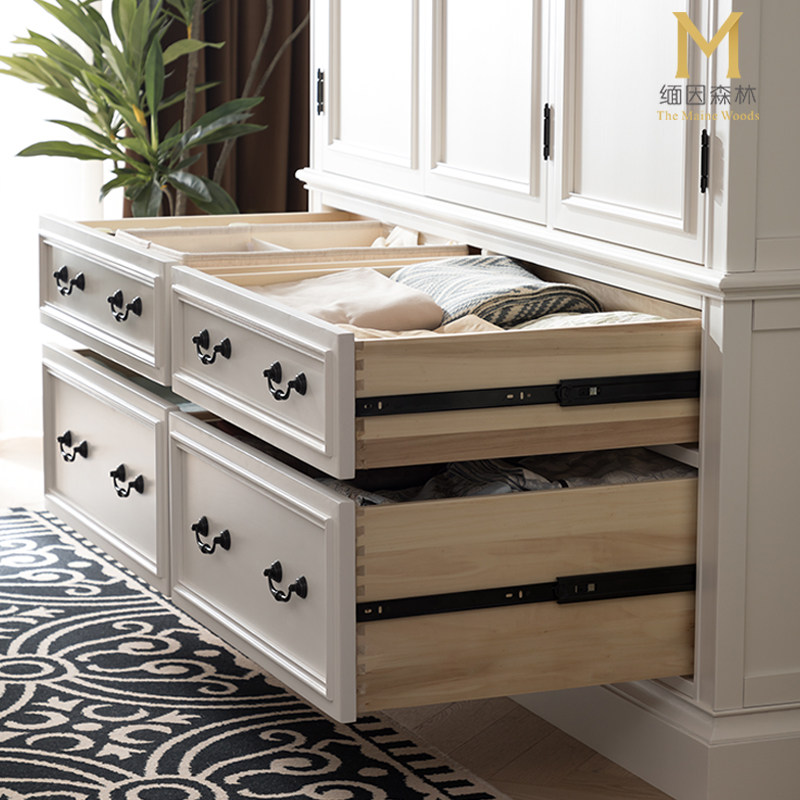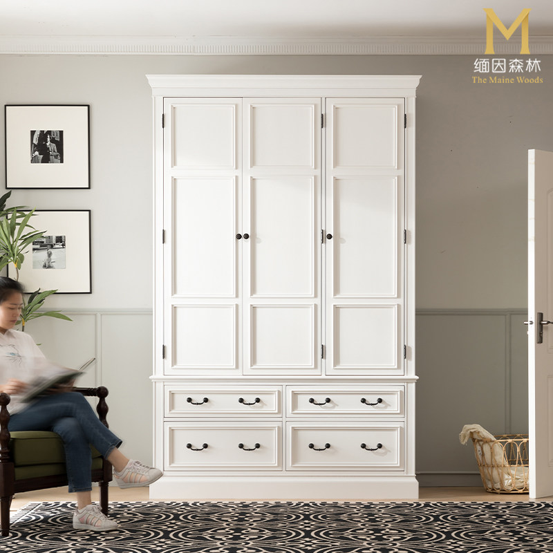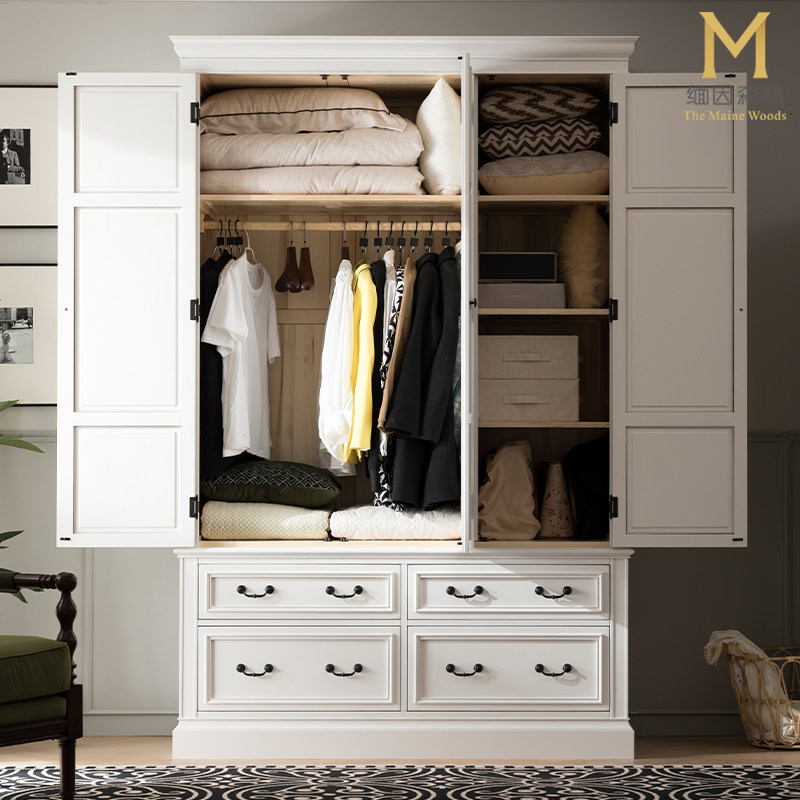 白色衣柜实木落地成品纯实木白蜡木衣橱卧室家具美式风格简约法式