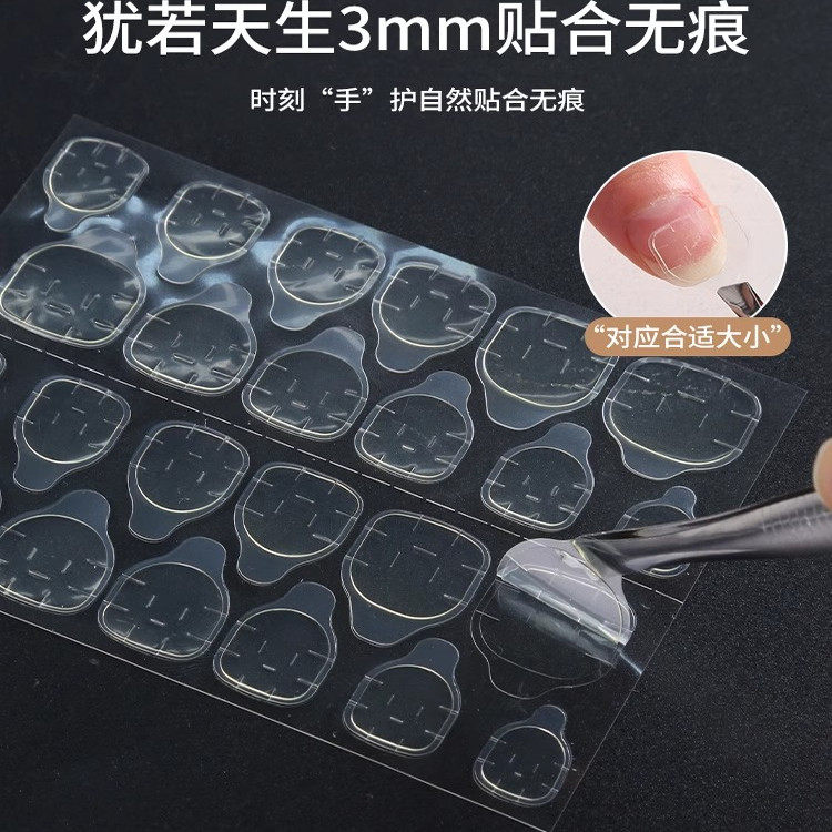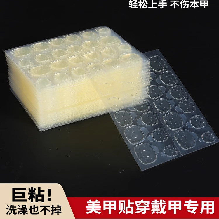 穿戴美甲果冻双面胶果冻胶穿戴胶黄粉胶双面24贴不伤指甲隐形粘贴