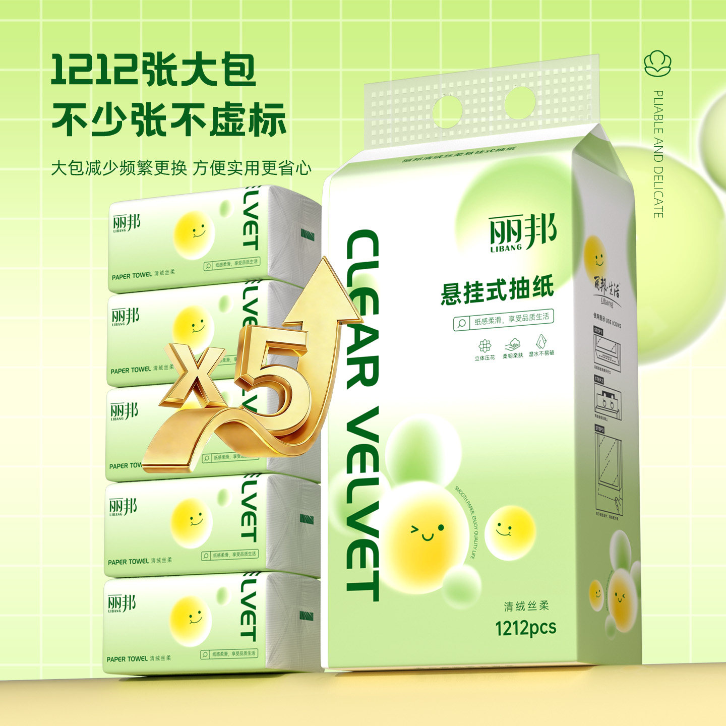 丽邦悬挂式抽纸6提整箱家用挂式餐巾纸巾擦手纸抽面巾挂抽卫生纸