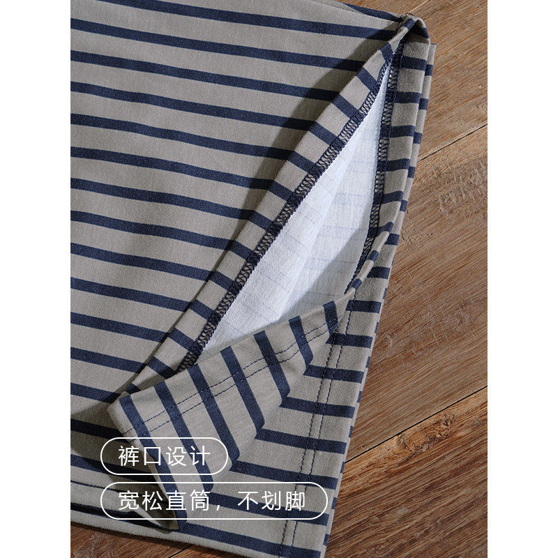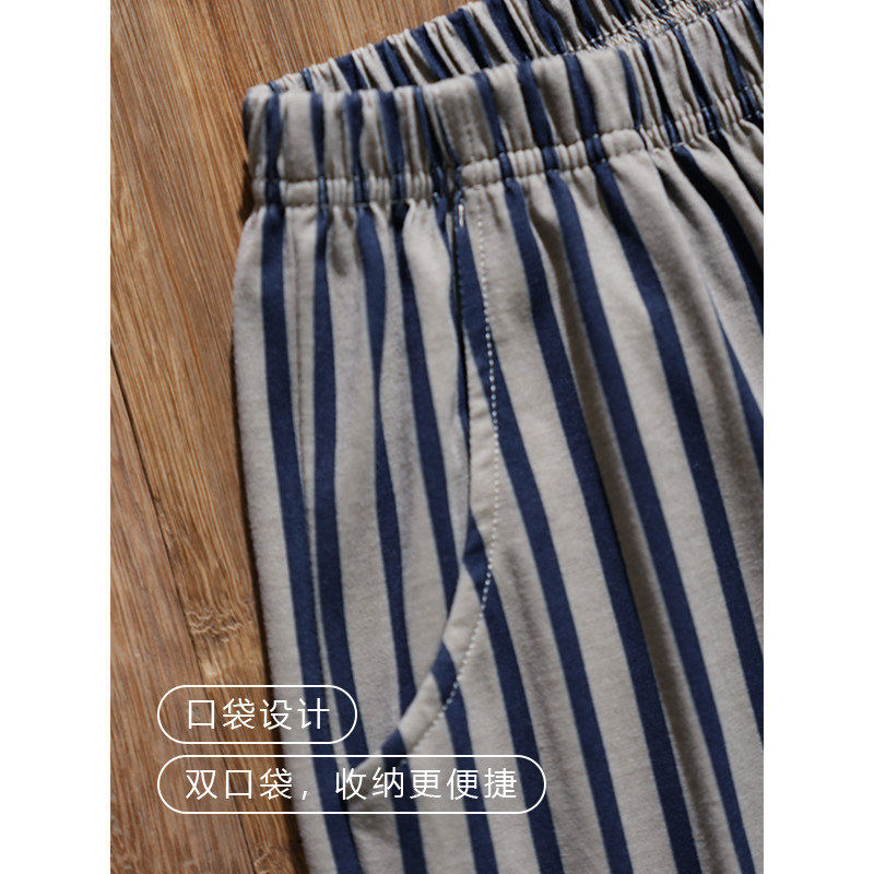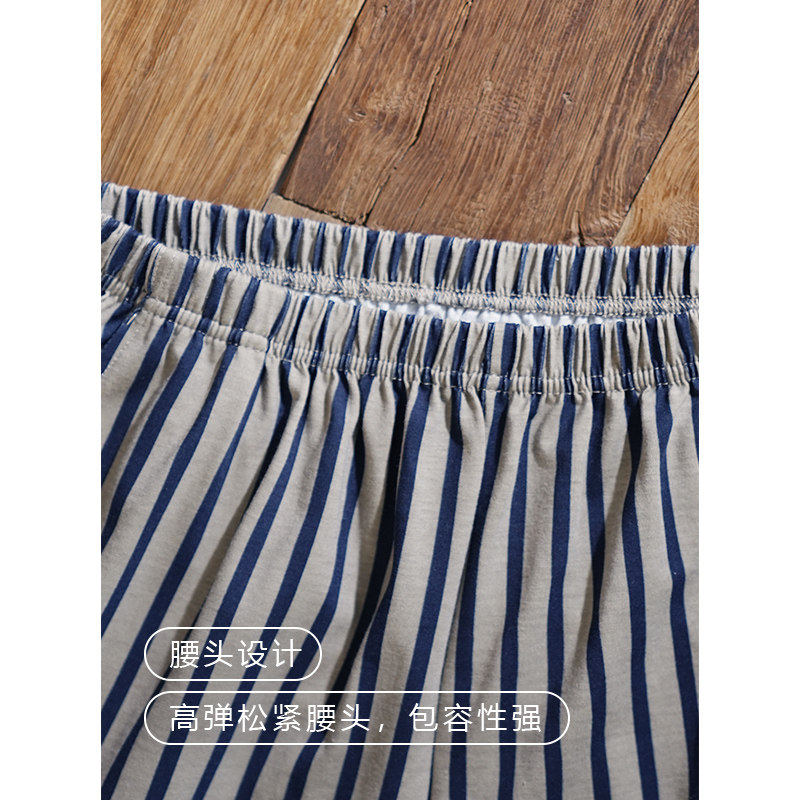 红豆睡裤男夏季纯棉薄款短裤条纹大裤衩裤头遛弯居家可外穿全棉家