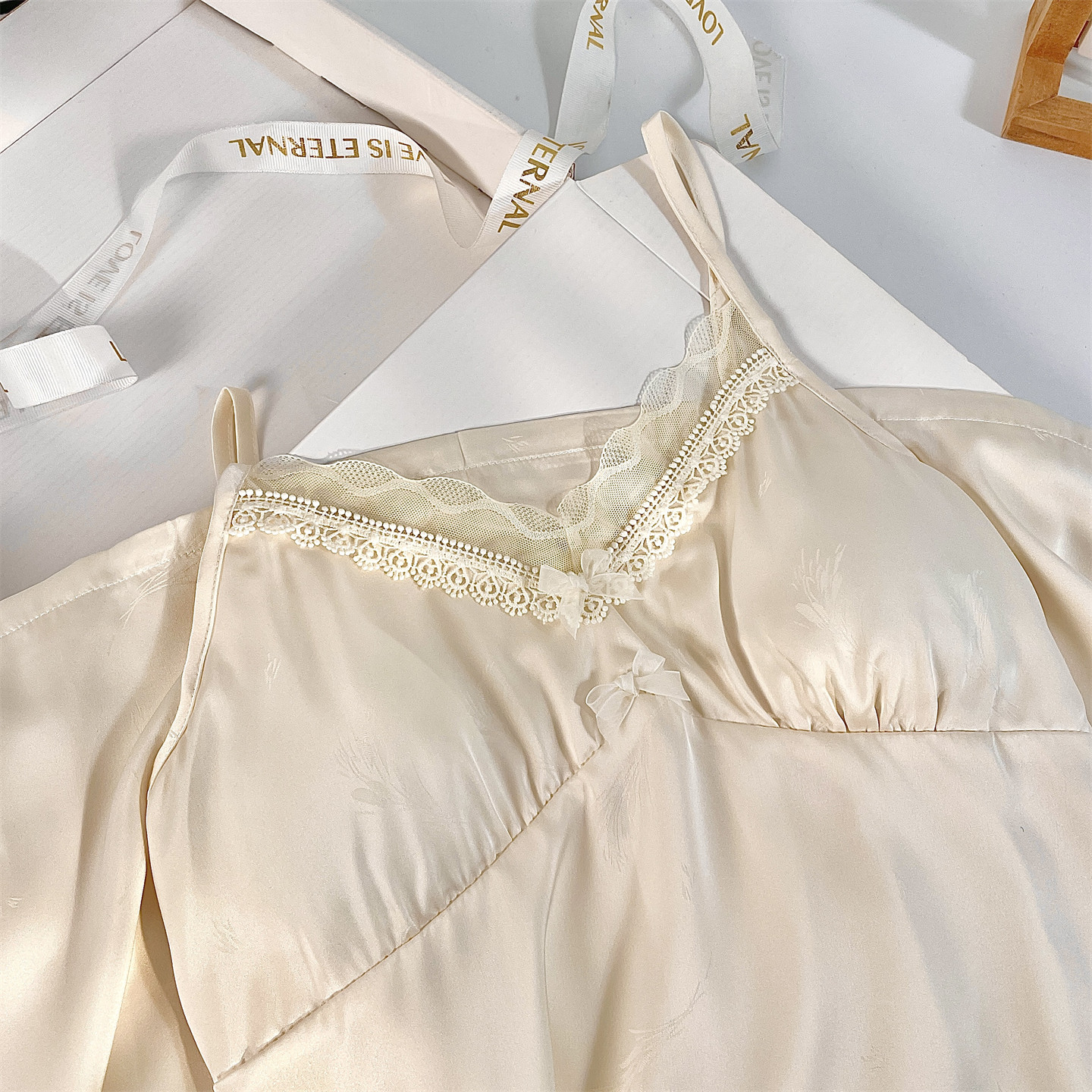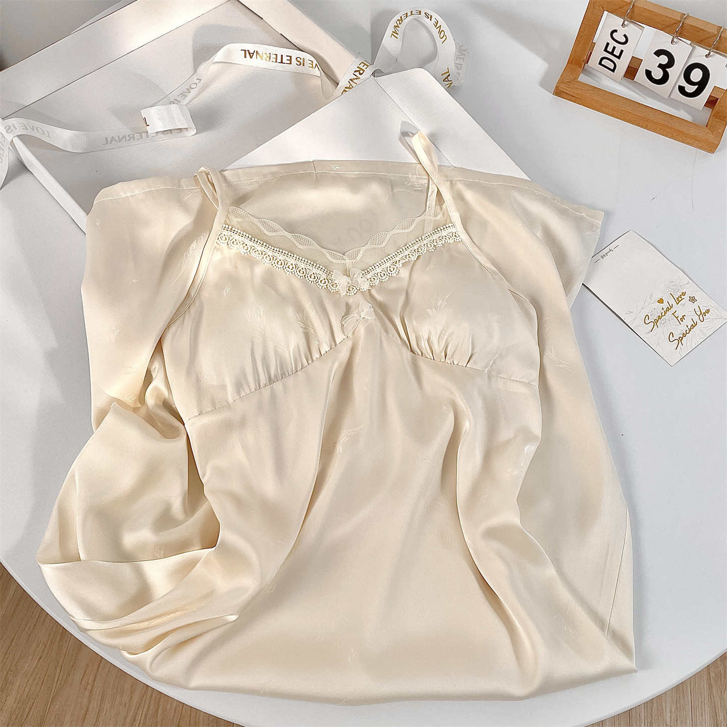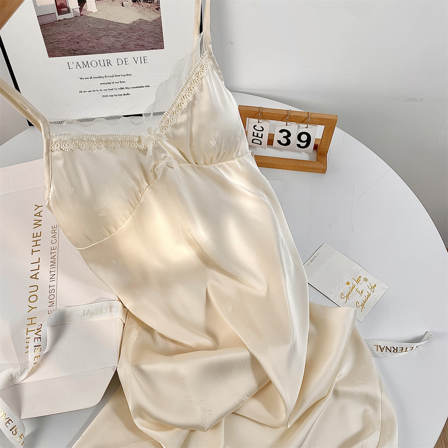 都市丽人睡裙冰丝纯欲性感风蕾丝凉感睡衣女吊带夏季带胸垫礼盒装
