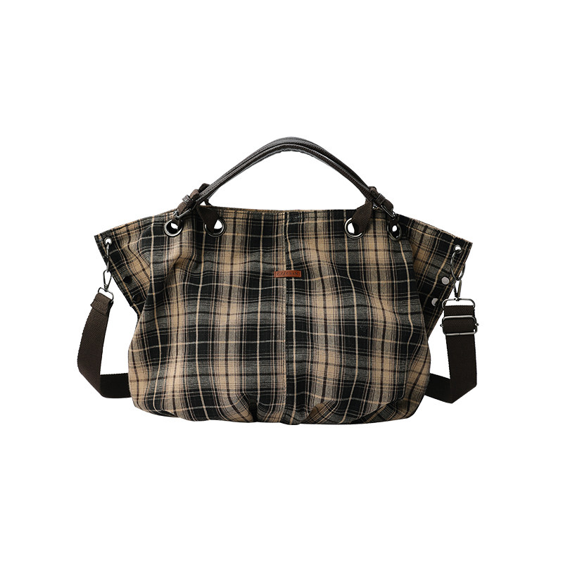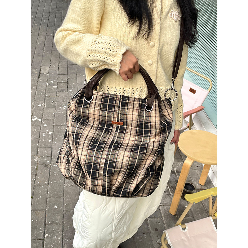 妖精的口袋复古格子大容量托特包女2025年新款通勤休闲百搭斜挎包