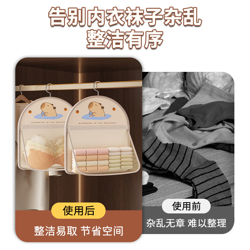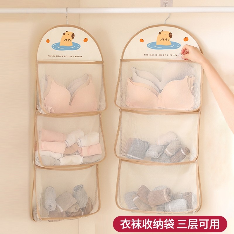袜子收纳袋宿舍衣柜悬挂式衣物内衣内裤挂袋网兜床头床边整理神器