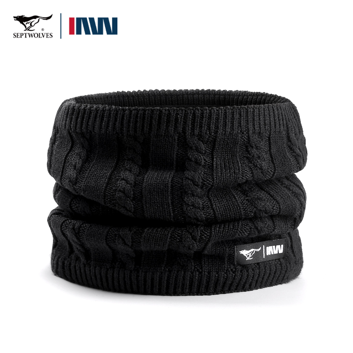 七匹狼保暖围脖男士户外骑车针织含羊毛春季加绒加厚护颈防风脖套