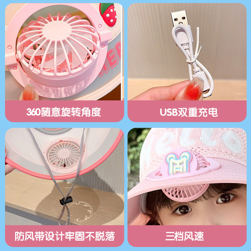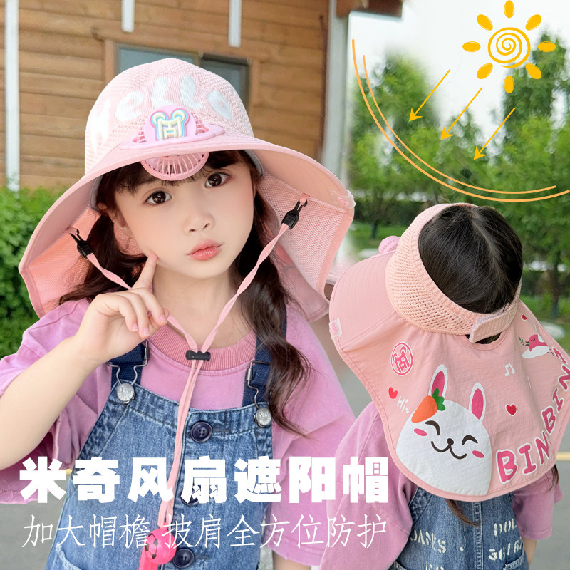 儿童帽子带风扇披肩帽夏季大檐男女童透气遮阳防晒户外出游太阳帽
