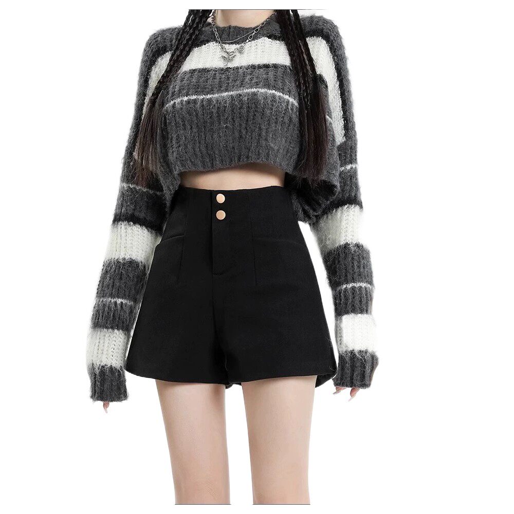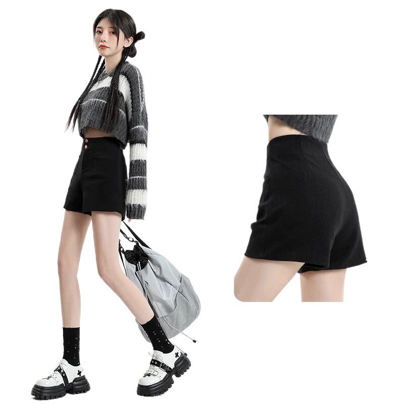 高腰黑色短裤女2024新款春秋打底靴裤百搭外穿阔腿a字裤子
