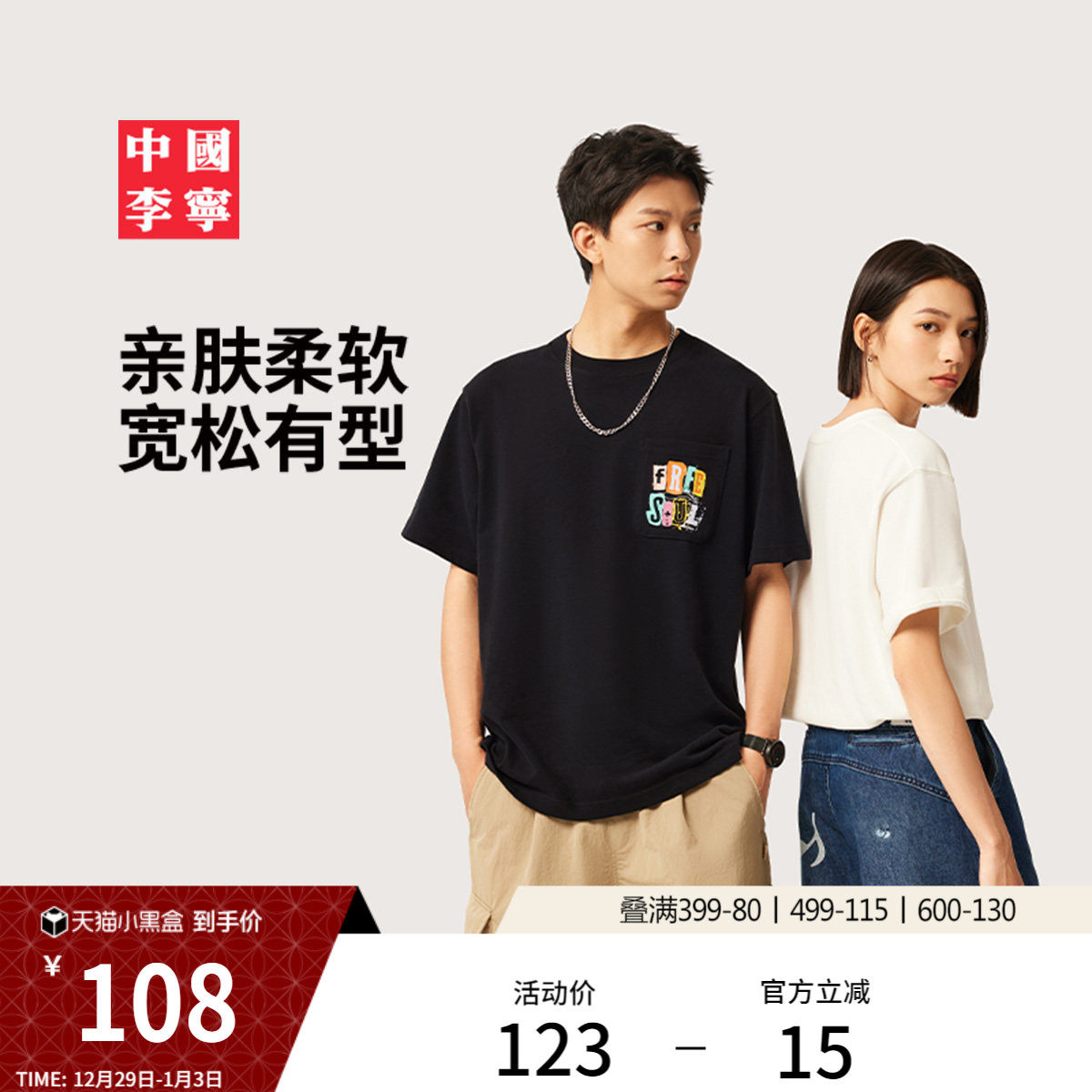 中国李宁T恤男士女士官方新款情侣上衣夏季休闲运动衣宽松运动服