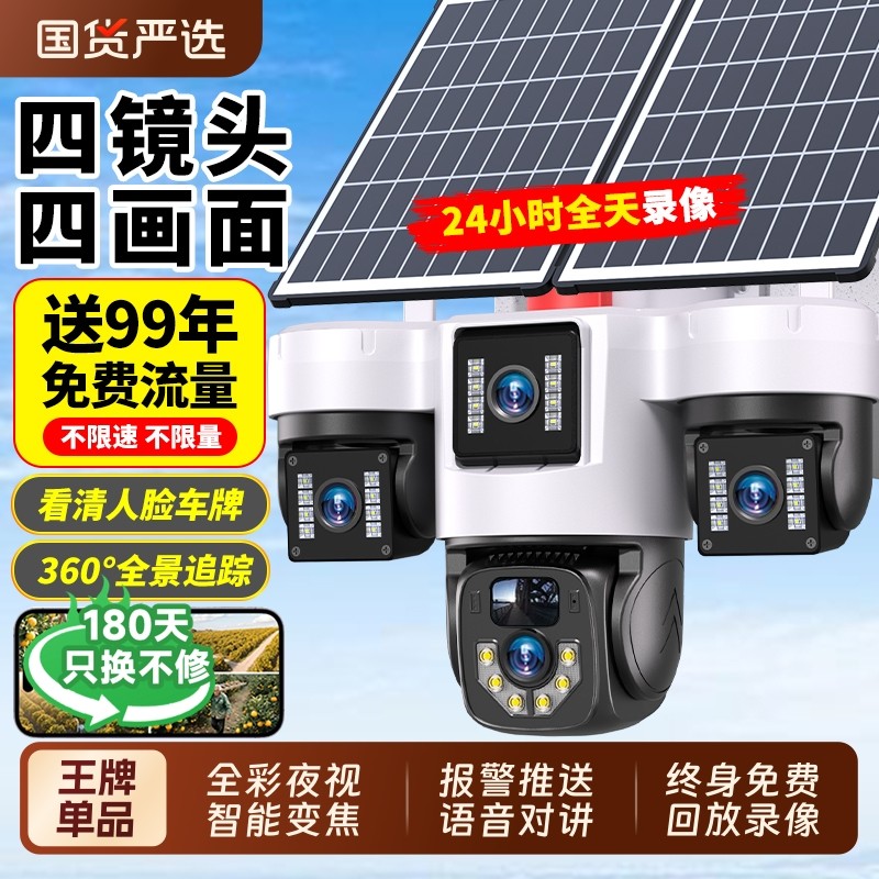 太阳能监控摄像360度无死角室外手机远程家用超清夜视户外摄影头