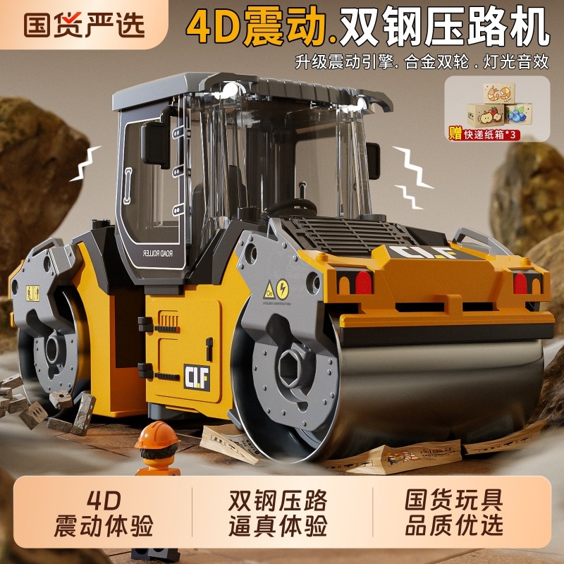 大号合金压路机玩具男孩仿真压路车挖掘机铲车工程车模型超大惯性