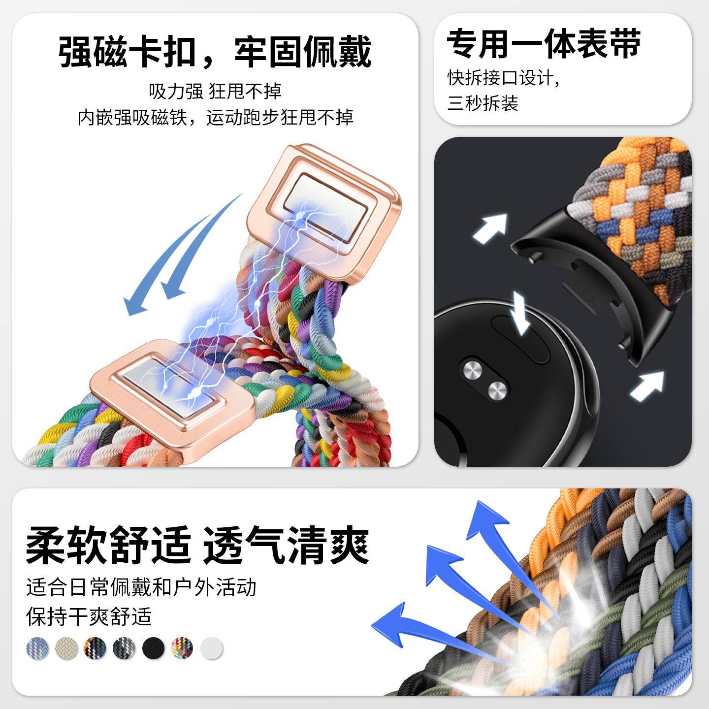 适用小米手环8/9/10表带新款尼龙编织回环搭配金属接头腕带智能运动小米8/9手表带经典时尚9NFC男女替换腕带