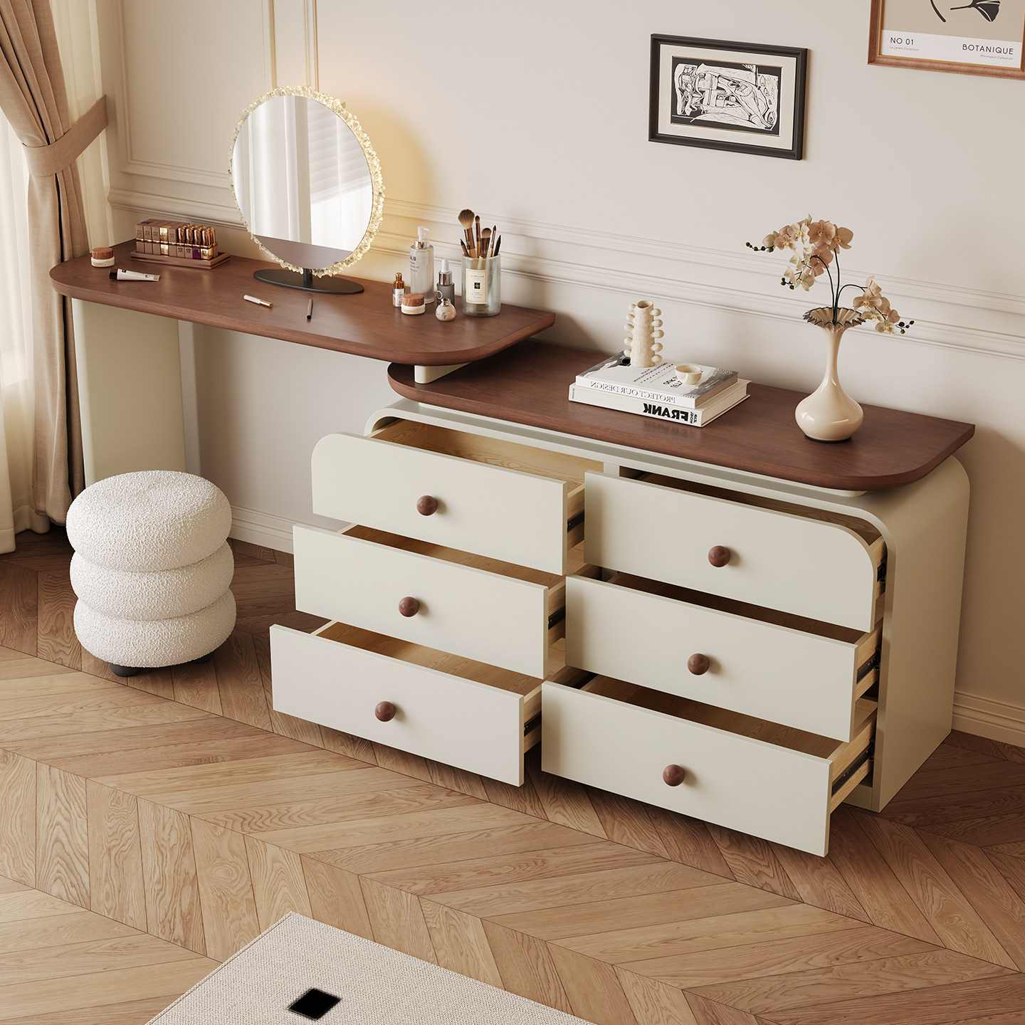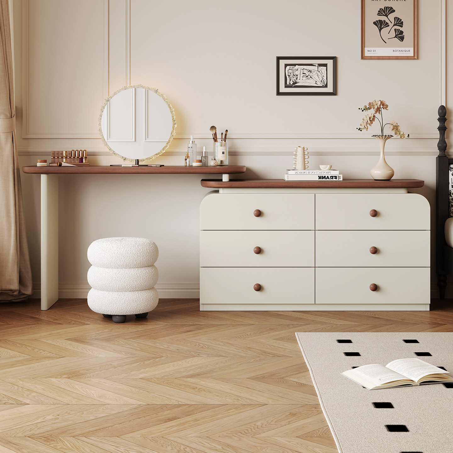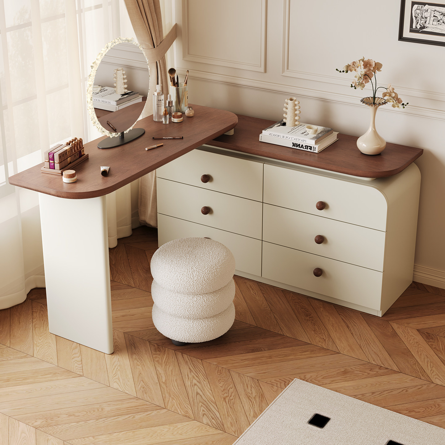 复古风梳妆台收纳柜一体现代卧室简约2025新款实木小户型化妆桌