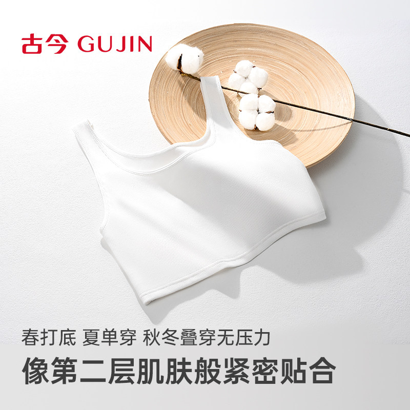 古今内衣女二合一打底衫无钢圈亲肤隐形胸垫轻薄背心文胸乳罩侧收