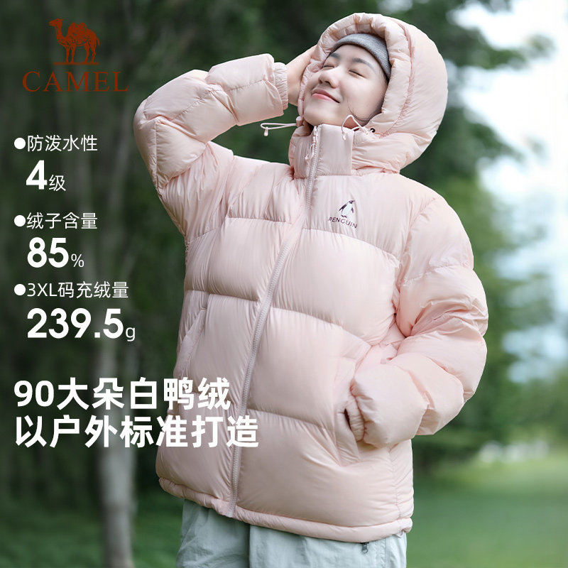 骆驼火山羽绒服女装2025秋冬新款防寒短款加厚保暖防风连帽外套男