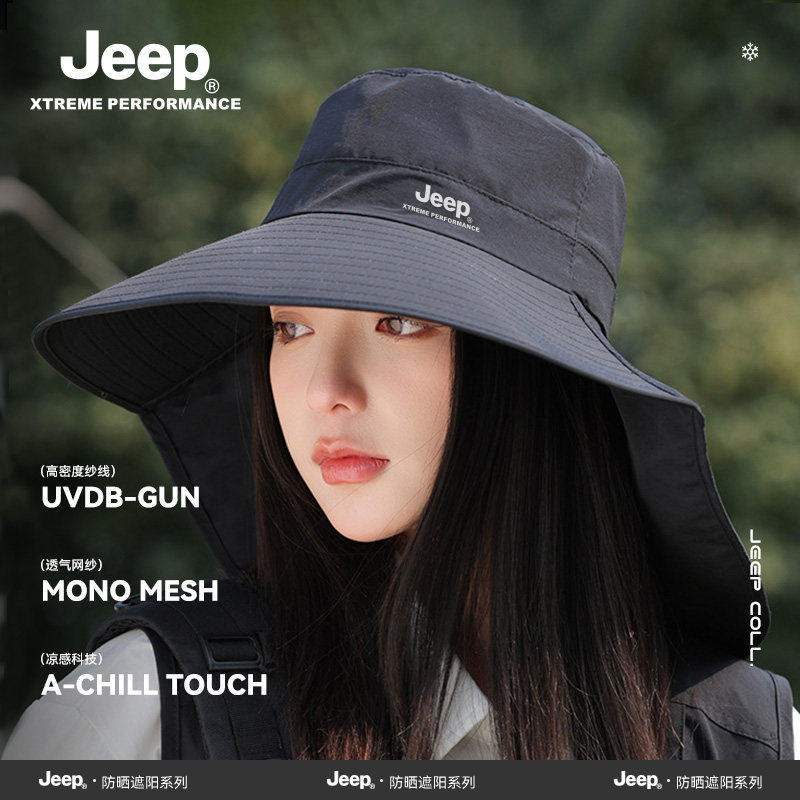 jeep吉普遮阳帽女士夏季新款户外防晒护颈遮阳帽子防紫外线渔夫帽