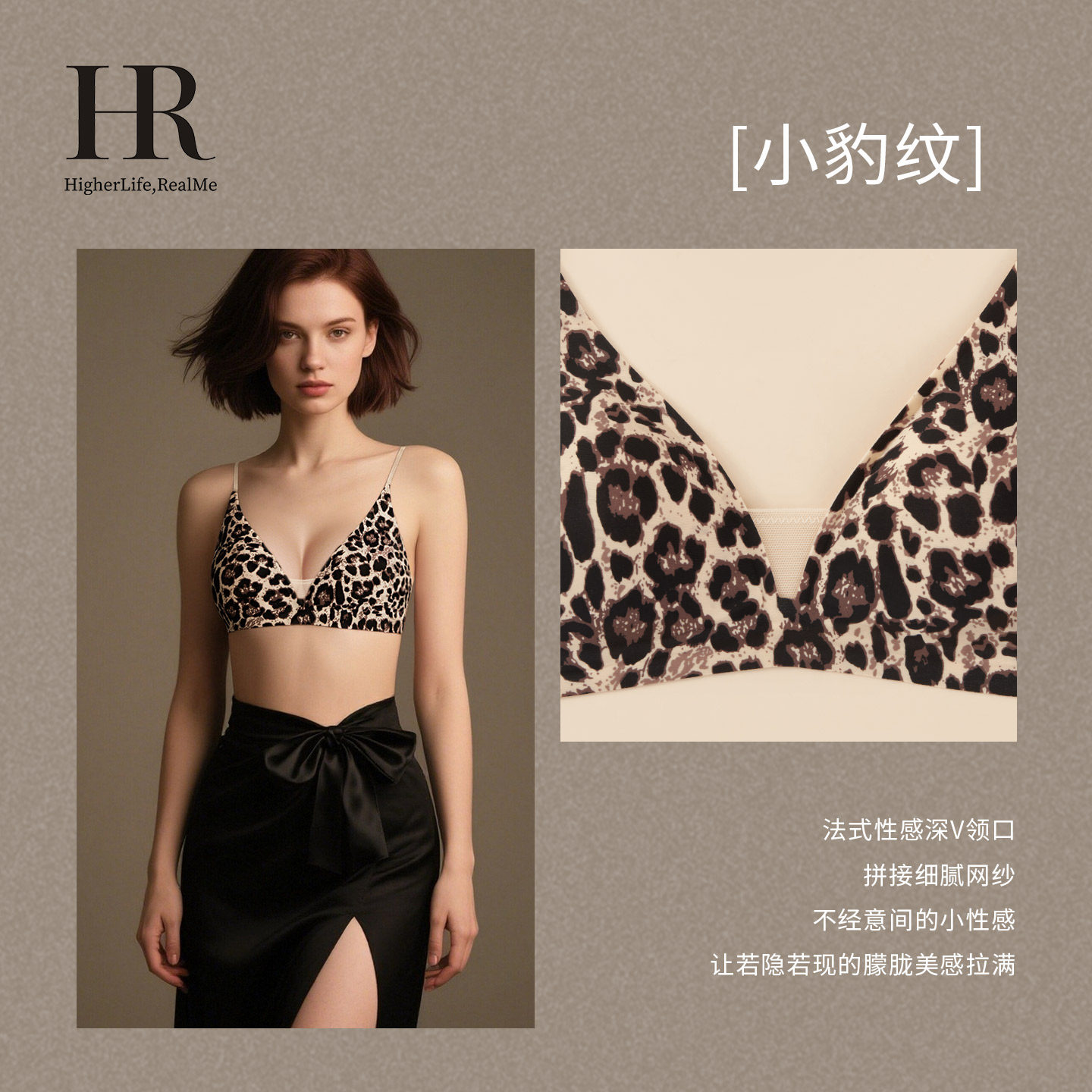 HR赫莲娜「小豹纹」法式三角杯内衣薄款小胸性感细肩带bra文胸女