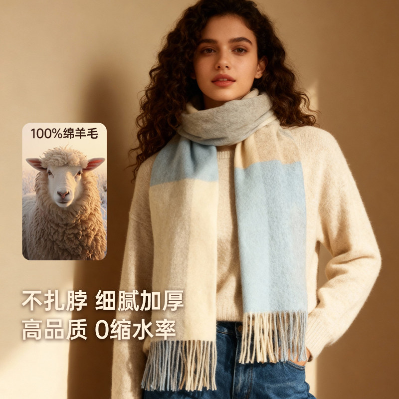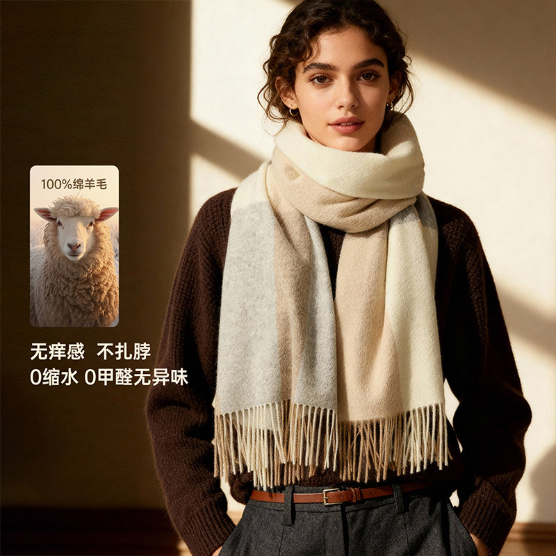三福格子围巾韩系高级感保暖围脖披肩两用旅游外搭女冬季2025新款