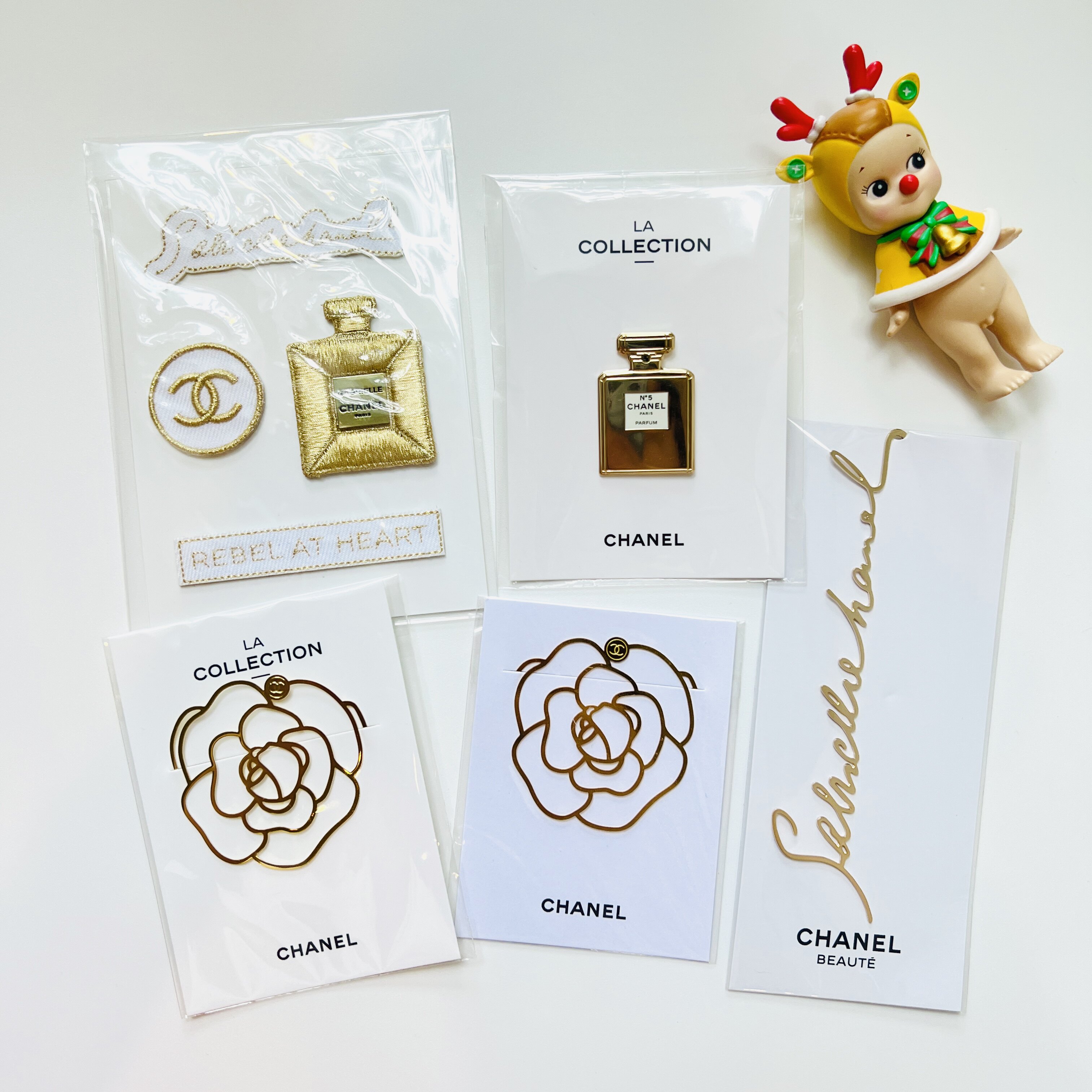 香奈儿山茶花书签胸针化妆包刺绣贴灯饰笔记本化妆箱集礼毛巾发夹