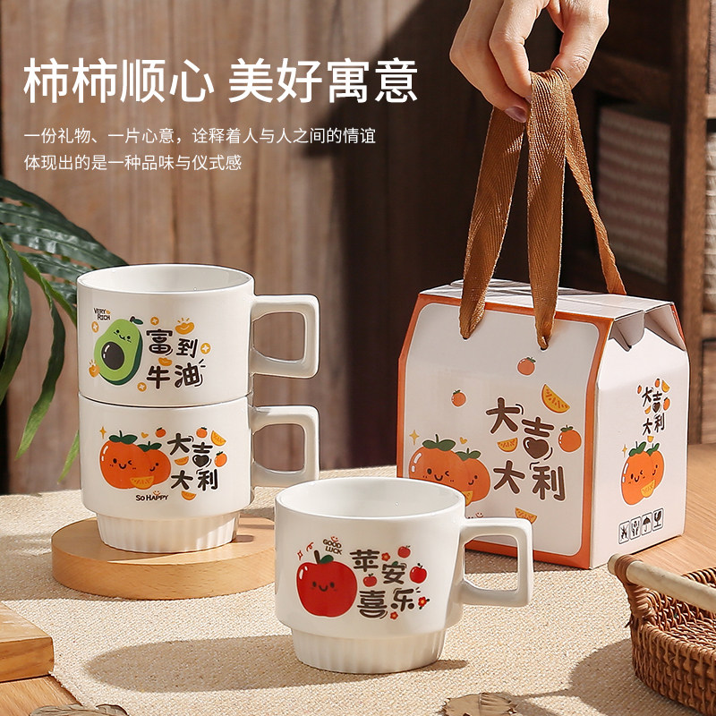 重阳节大吉大利陶瓷马克杯定制logo开业实用伴手礼品盒物套装批发