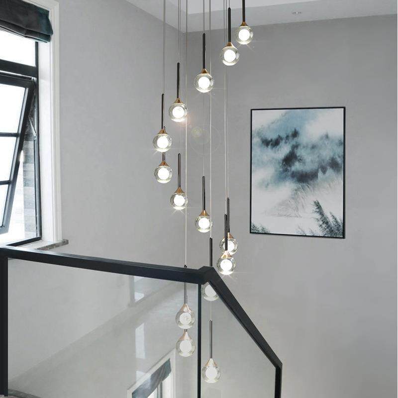 现代简约水晶轻奢LED楼梯吊灯别墅复式跃层楼梯间旋转中空loft灯