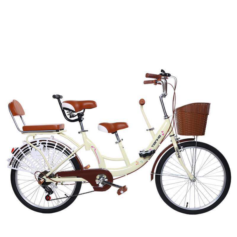 成人自行车女式母子带娃双人通勤22寸24寸变速淑女复古单速