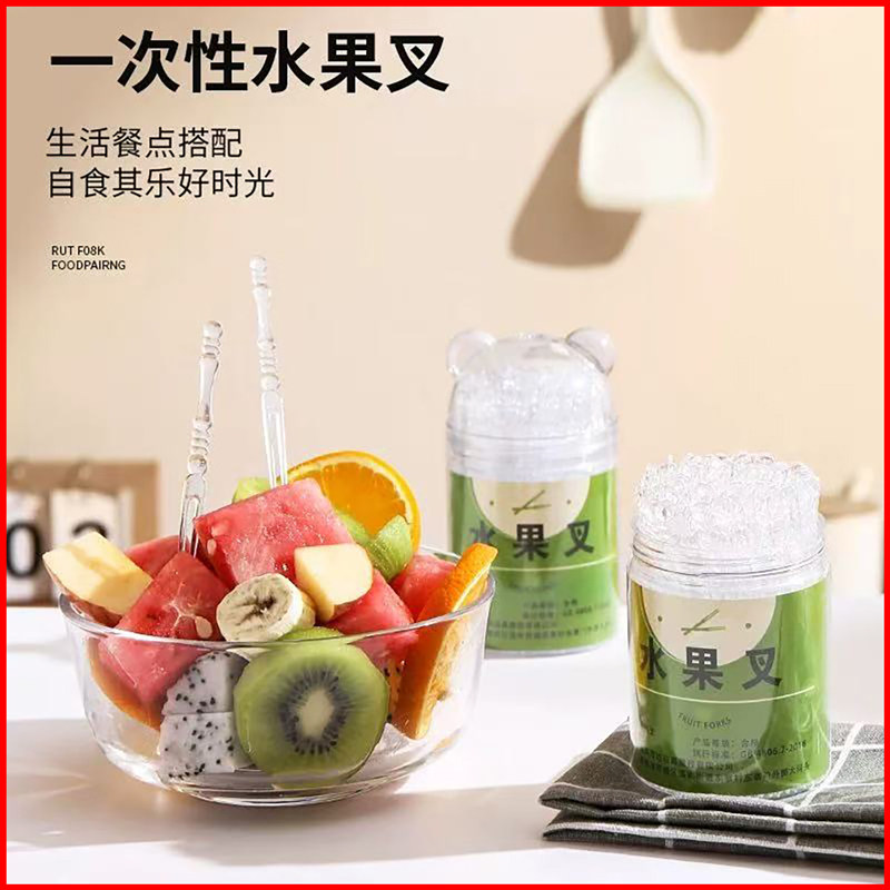 水果叉子一次性食品级便携塑料蛋糕叉家用高级感儿童安全水果签