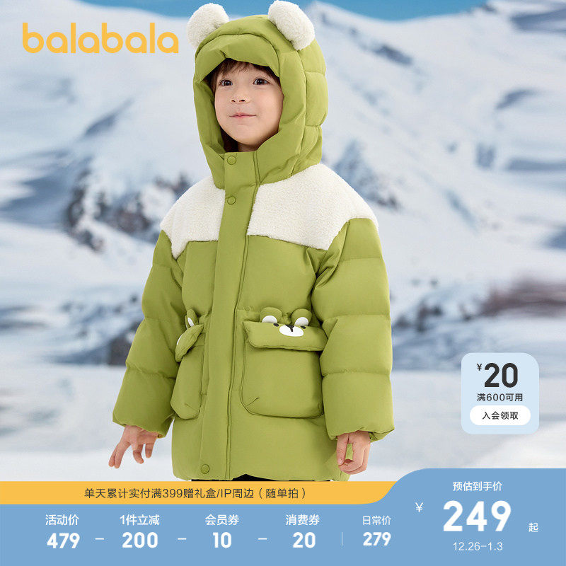巴拉巴拉童装儿童羽绒服男童冬装连帽外套宝宝萌上衣舒适户外潮款