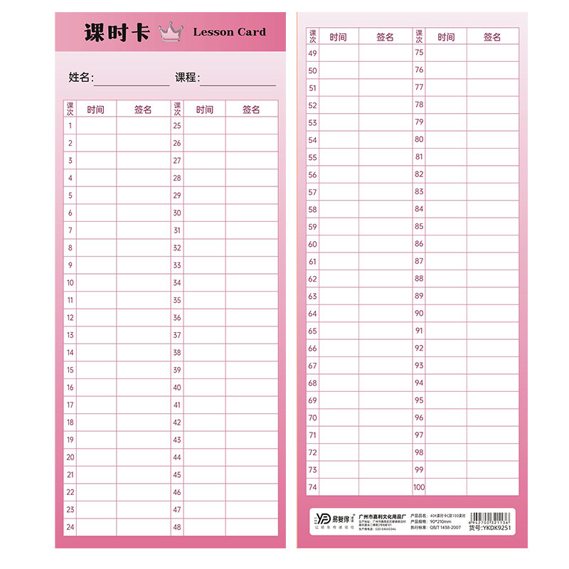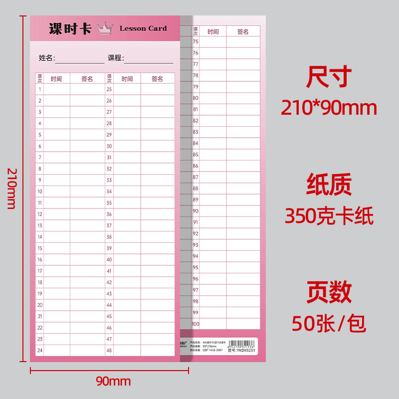 学员课时卡私教课英语课书法课少儿编程健身舞蹈班学生上课出勤卡