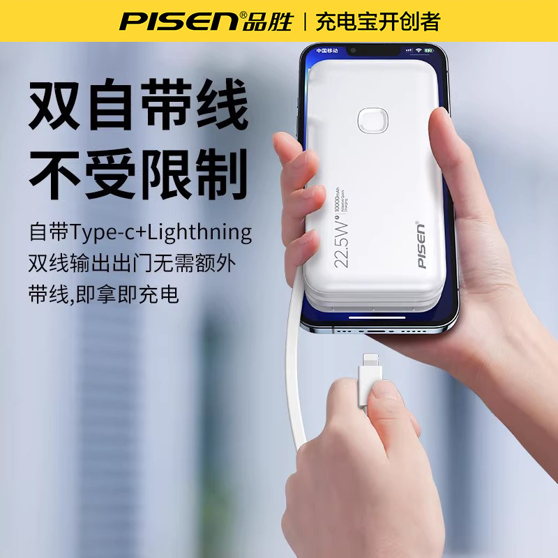 【国家3C认证】品胜自带插头充电宝充电器三合一10000毫安自带线电霸20000超大容量移动电源适用苹果17小米15