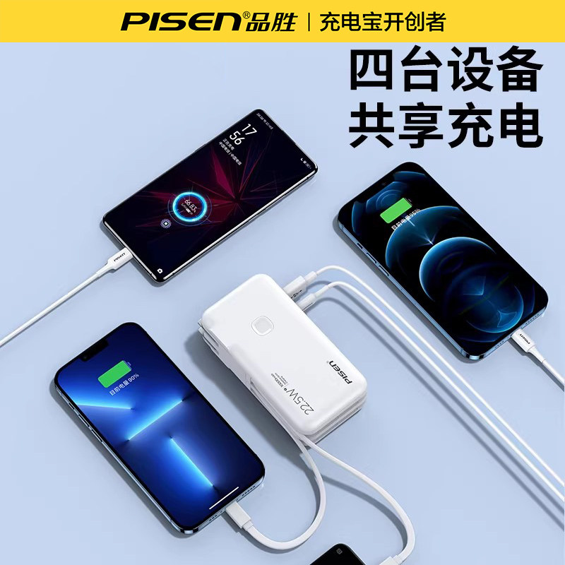 【充电宝3C认证】品胜20000毫安充电宝自带四线大容量超薄小巧便携政府补贴移动电源适用苹果17华为可上飞机