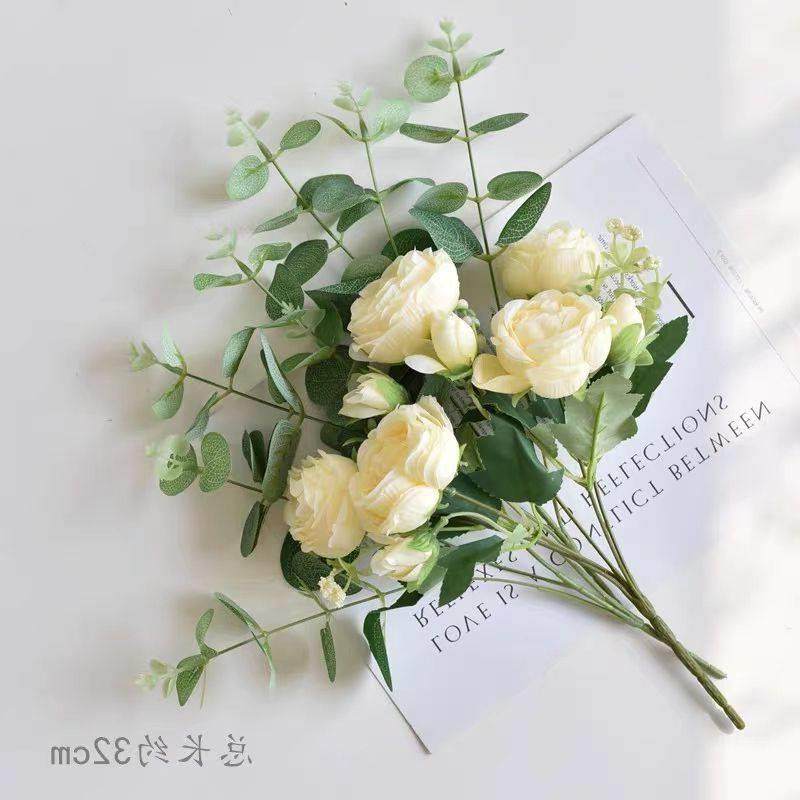 ins风牡丹假花仿真花客厅餐桌摆设尤加利装饰花艺摆件家居饰品