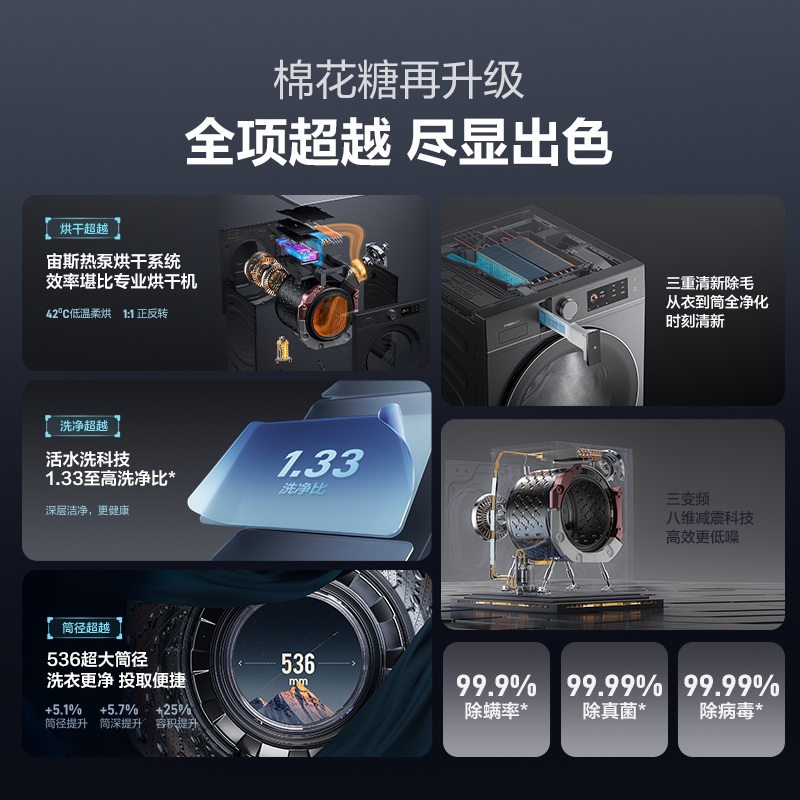 海信璀璨棉花糖全家筒滚筒洗衣机热泵洗烘