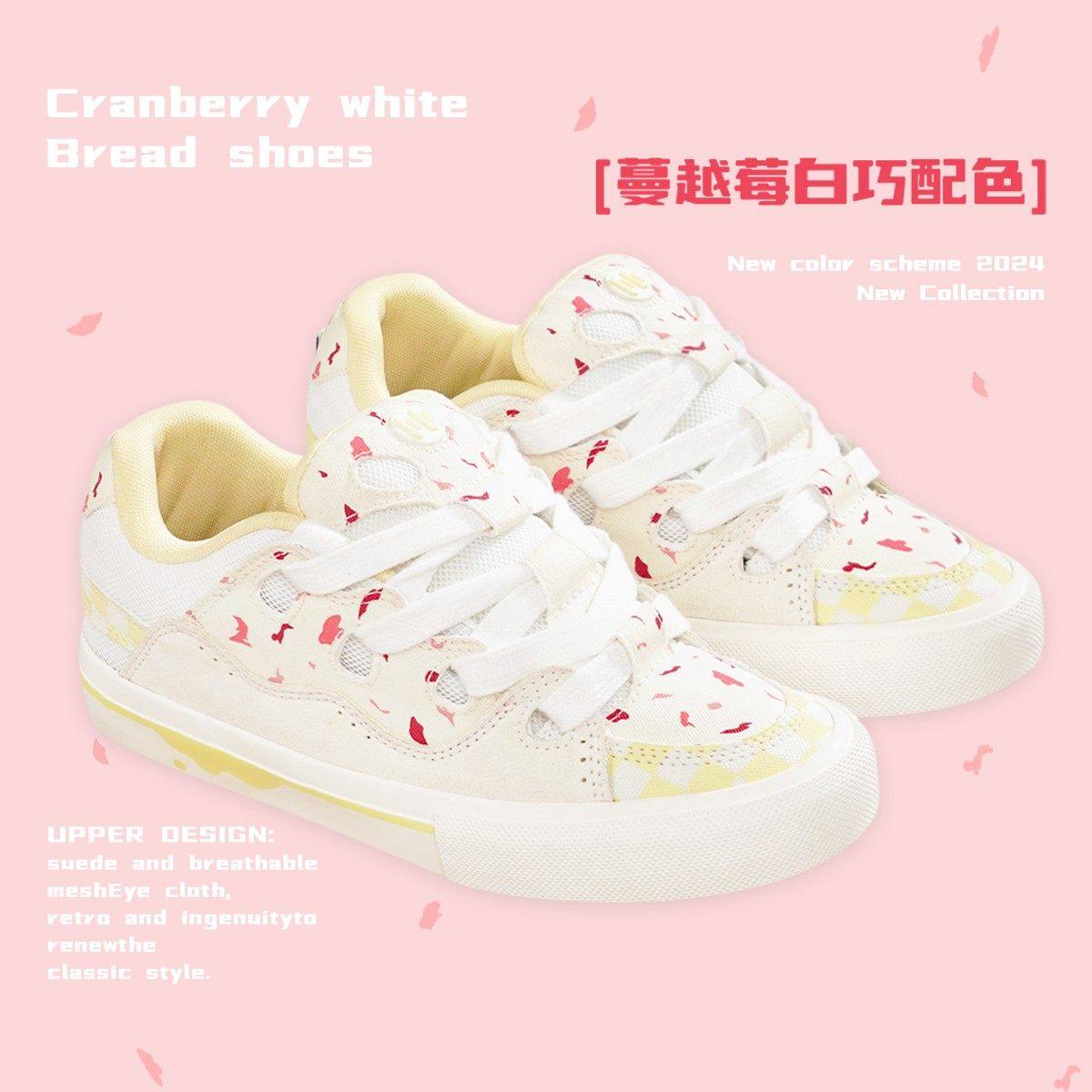 顽刻官方面包鞋蔓越莓白巧配色复古低帮BAKE男女国潮滑板鞋