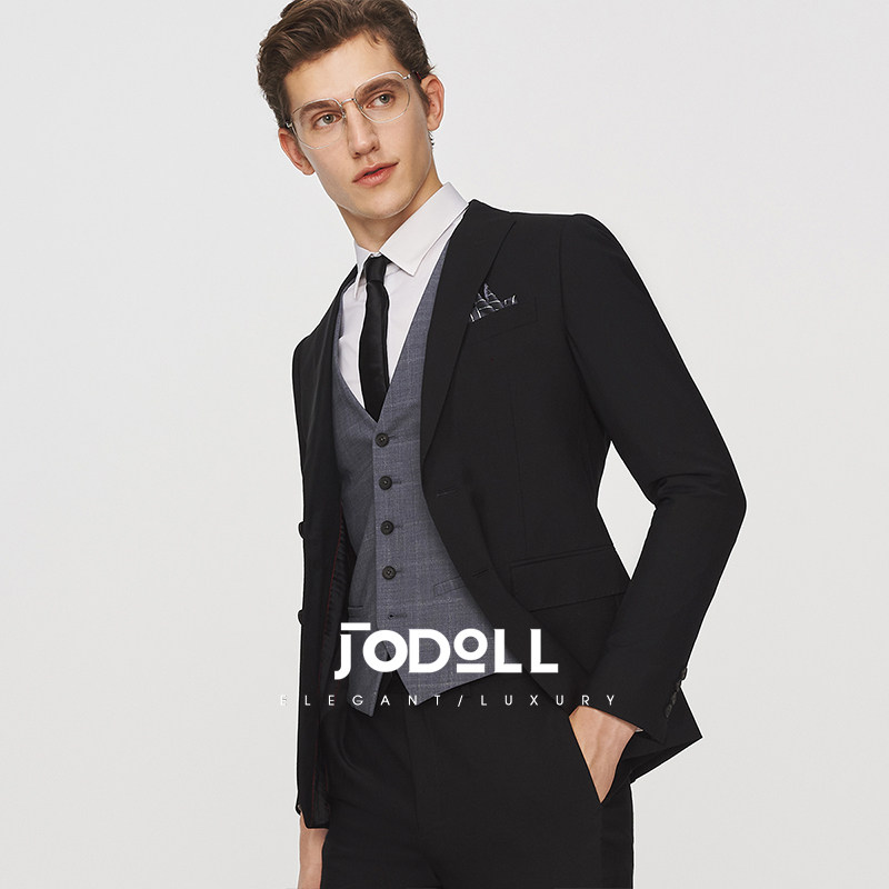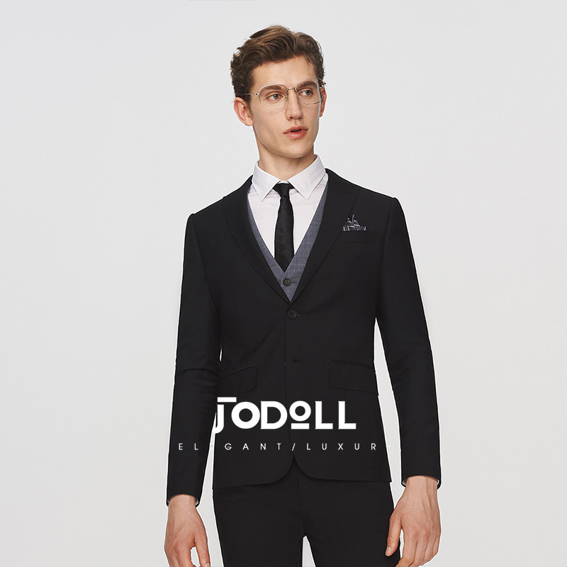 JODOLL乔顿男士羊毛西服套装上衣男商务正装修身黑色职业西装外套