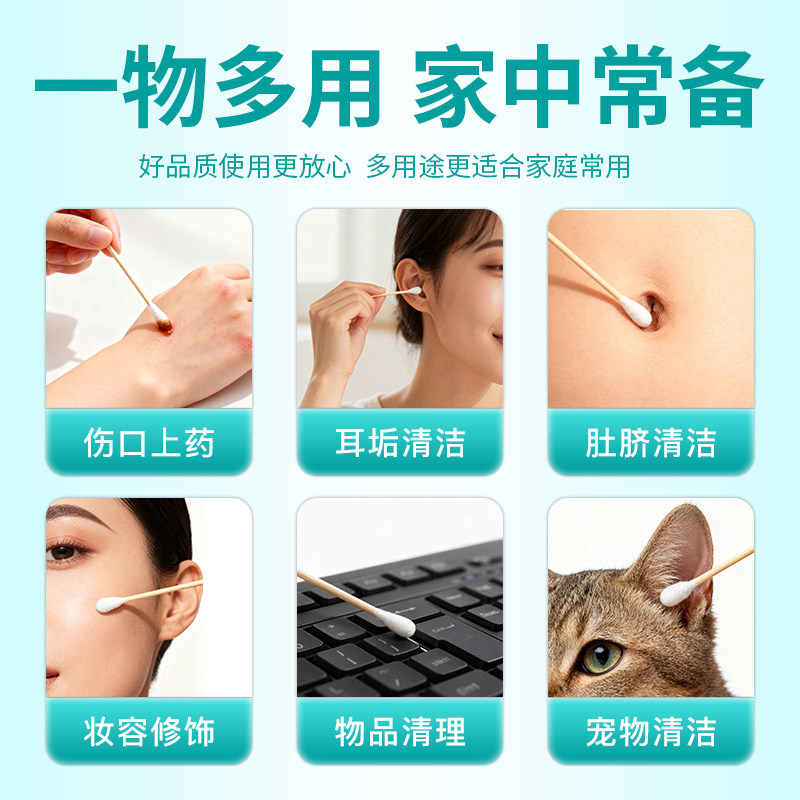 医用棉签一次性新生婴儿掏耳鼻屎消毒脱脂棉球超细双头棉花棒家用