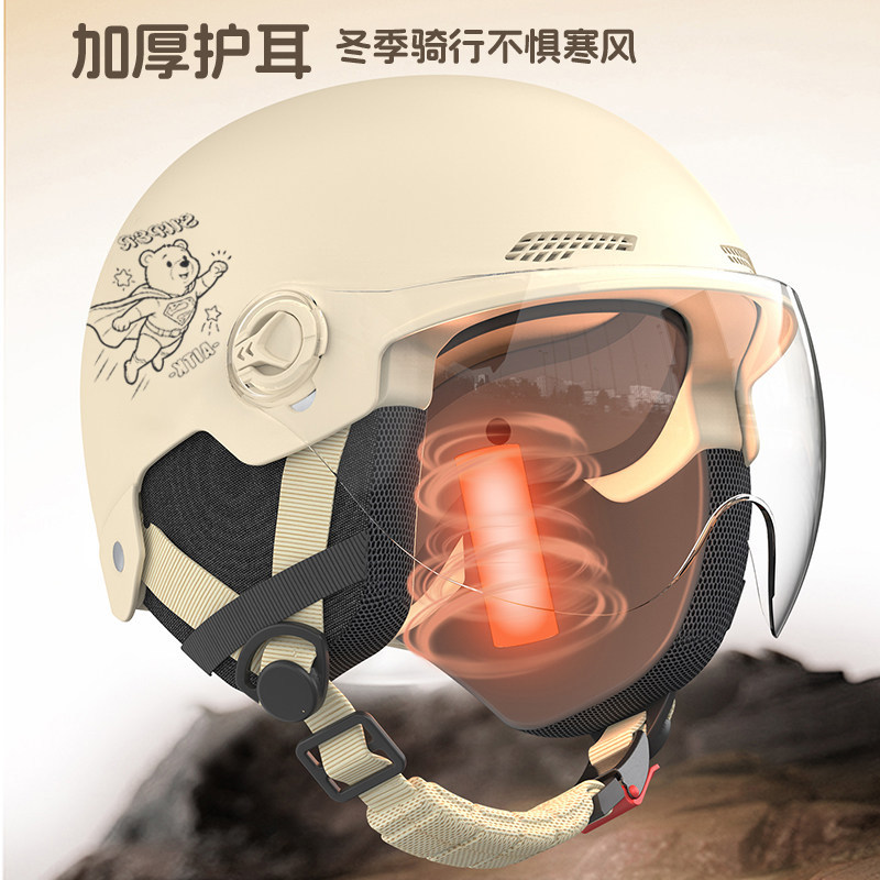3c认证电动车头盔女士电瓶摩托半盔男四季通用骑行冬季保暖安全帽