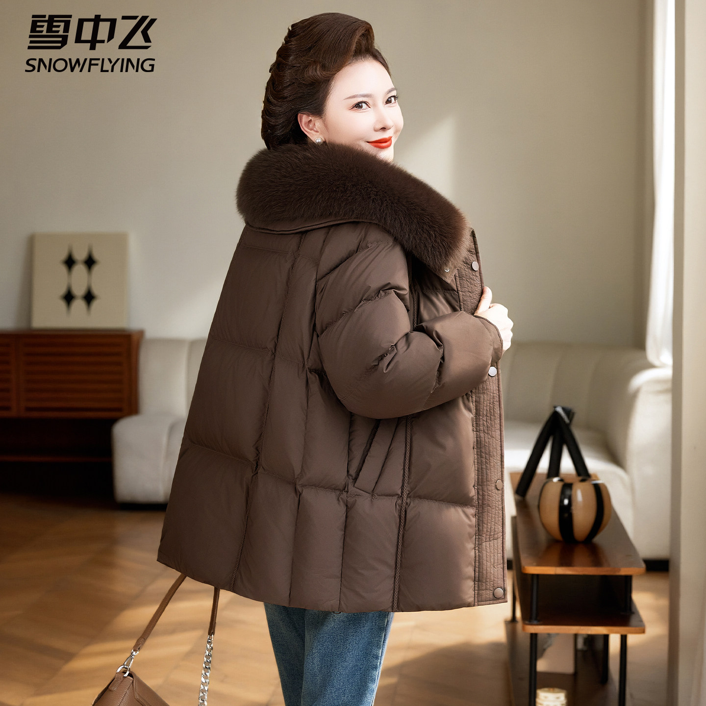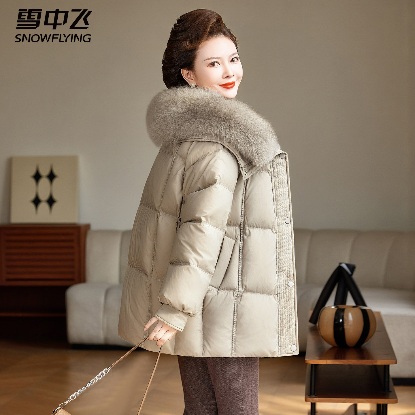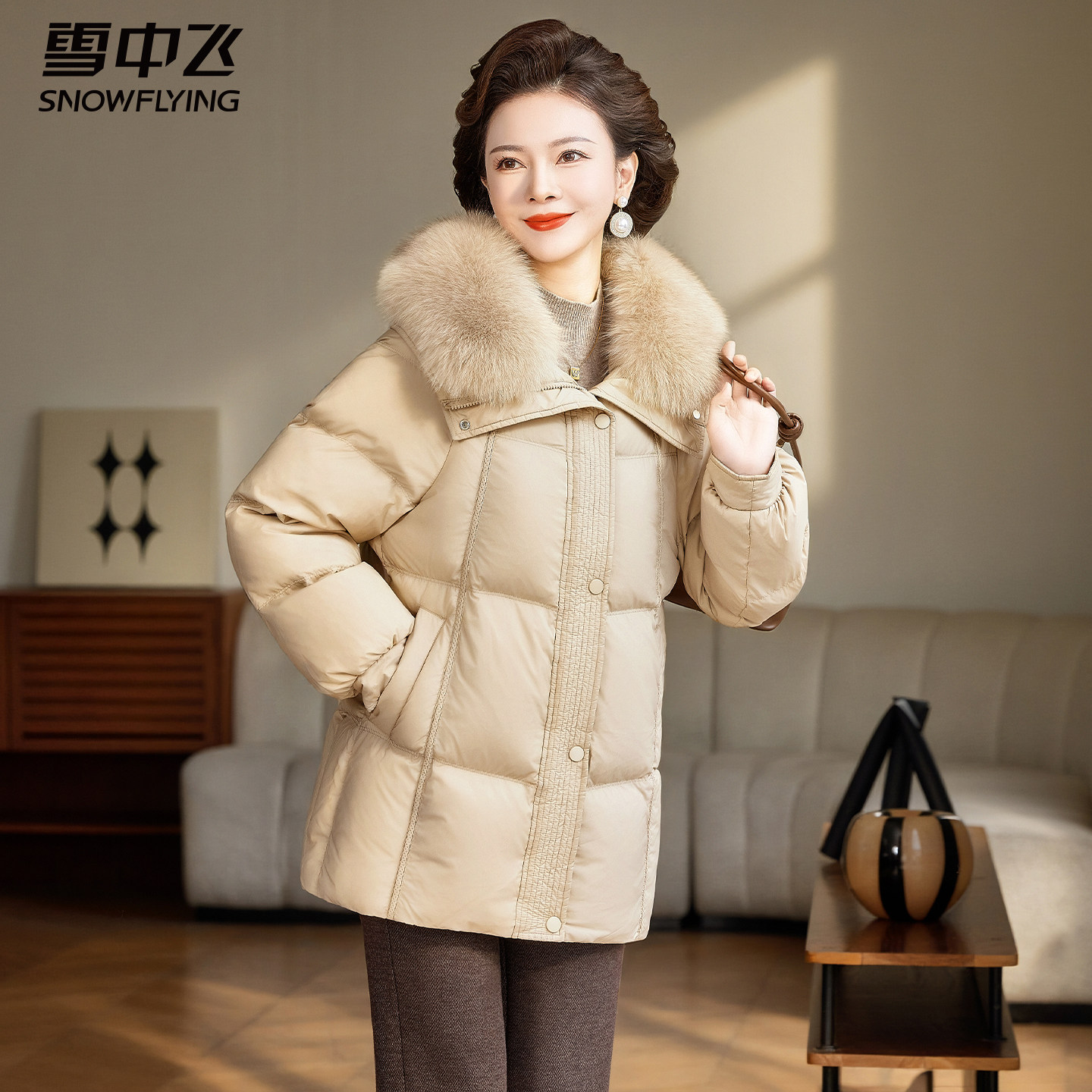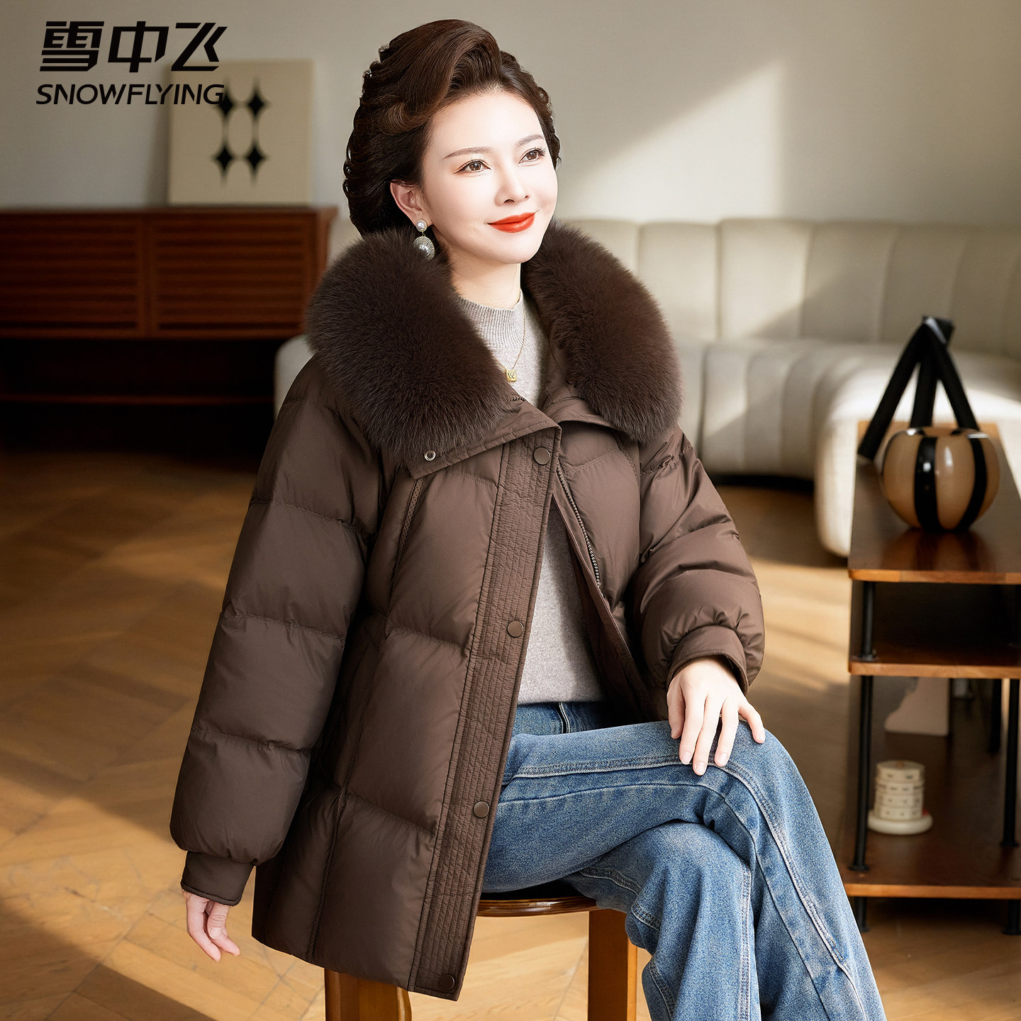 雪中飞95绒冬季女士妈妈装羽绒服女款大毛领冬装中老年中长款外套
